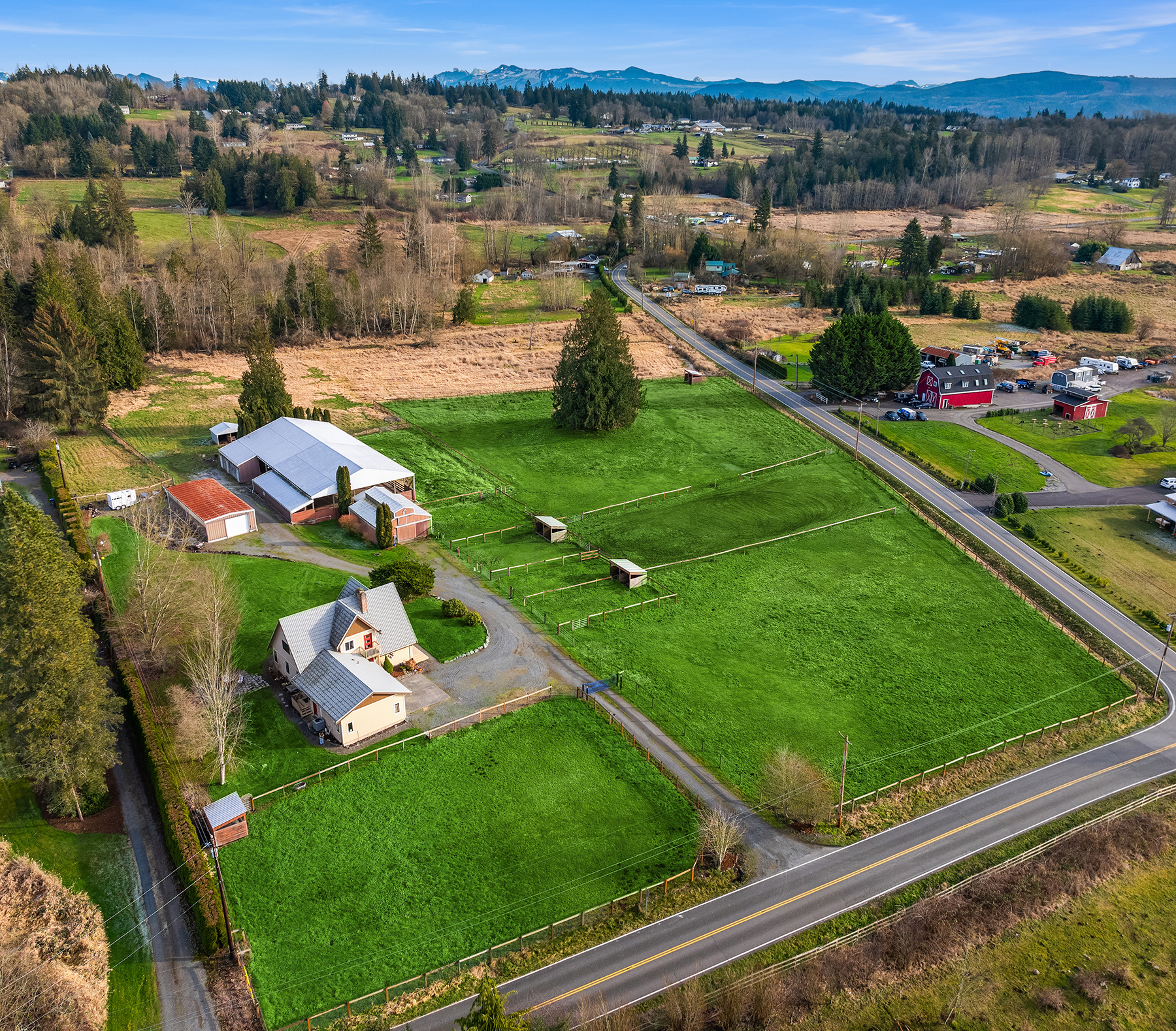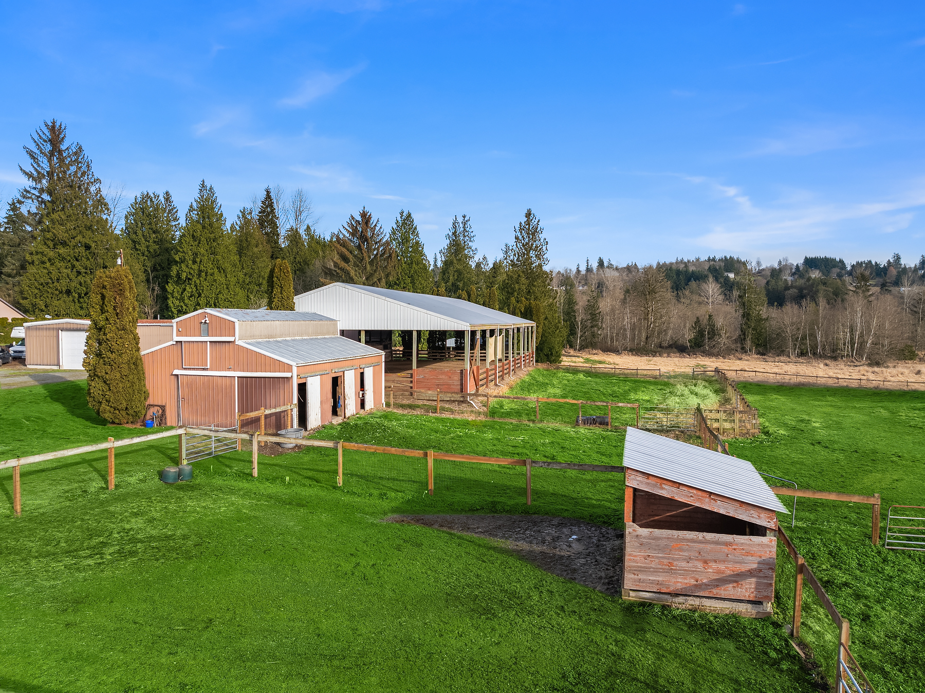 Welcome to Blue Gate Farm! This wonderful Roosevelt Equestrian property is being offered for the first time in over 25 years. A beautiful 9+ acre setting offers a 5-stall main barn with heated tack room. A 60 x 120 covered arena with additional stalls, 2nd tack and wash rack. Large outdoor arena area. Fenced and cross fenced pastures with loafing sheds. Light filled 2 story home with dual staircases and clerestory ceilings offers main floor primary with 5-piece bath. Granite and stainless kitchen with breakfast nook accesses wrap-around decking. Loft/office on upper level with Rainier vistas as well as 2 additional bedrooms and a full bath. Cozy firepit in rear yard. Oversized detached multiple bay shop with tractor/trailer storage. Gated and fenced property conveniently located just minutes to downtown Snohomish, Monroe, Hwy 2 and 522!