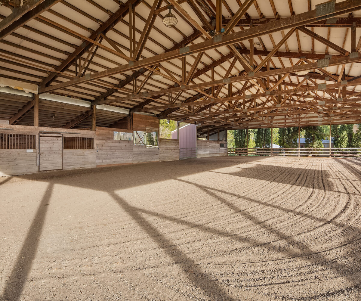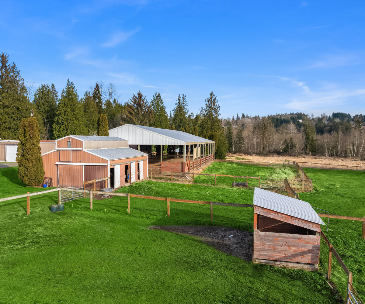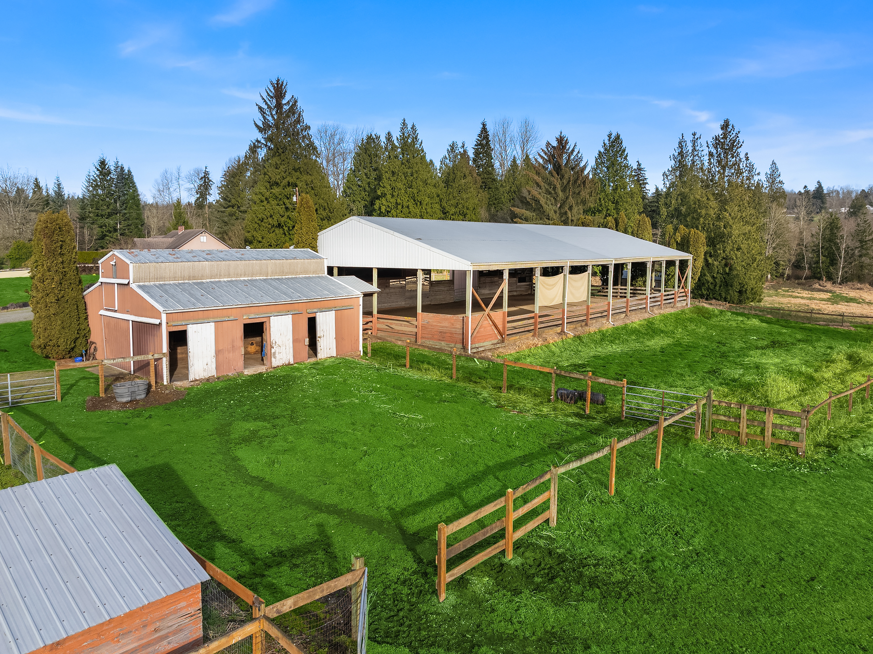 Welcome to Cedar Meadow Farm. Stellar location near Echo Lake golf course on over 10 cleared acres on two tax lots. Main barn offers 14 stalls with powder room, gorgeous tack room with washer/dryer, 2nd tack room, wash rack and paddocks off each stall. Additional Arena barn offers a 70 x 200 indoor arena, 12 stalls with matted paddocks, client lockers, beautiful client lounge with kitchenette, 4 bay shop/outbuilding with shaving storage. Centaur fenced pastures, paddocks and dry lot turnouts with loafing sheds. Lovely custom home offers main floor primary suite with 5-piece bath, Great Room design, mud room with built-ins, hobby room & Bonus room with separate entrances. Covered back patio, garden space & pastoral views. All on a quiet street of Acreage homes & Estates.
