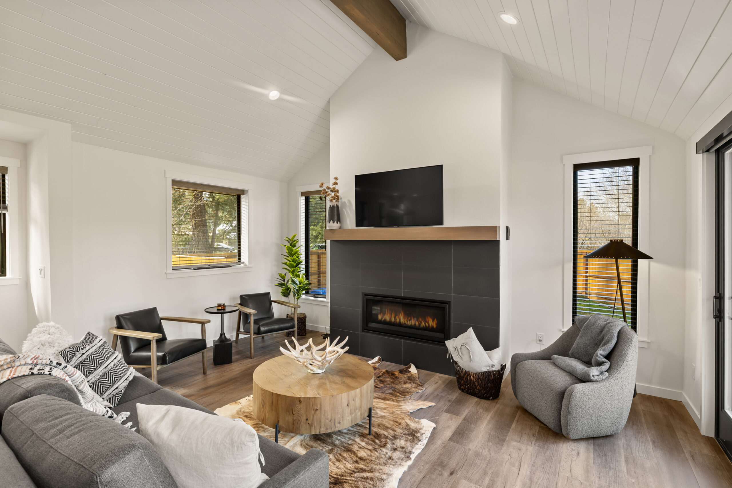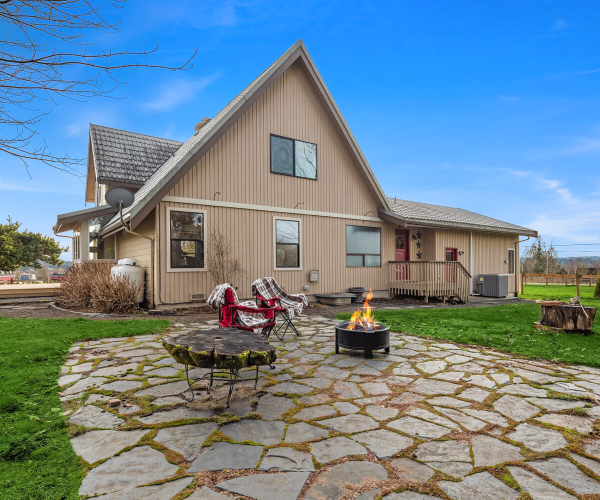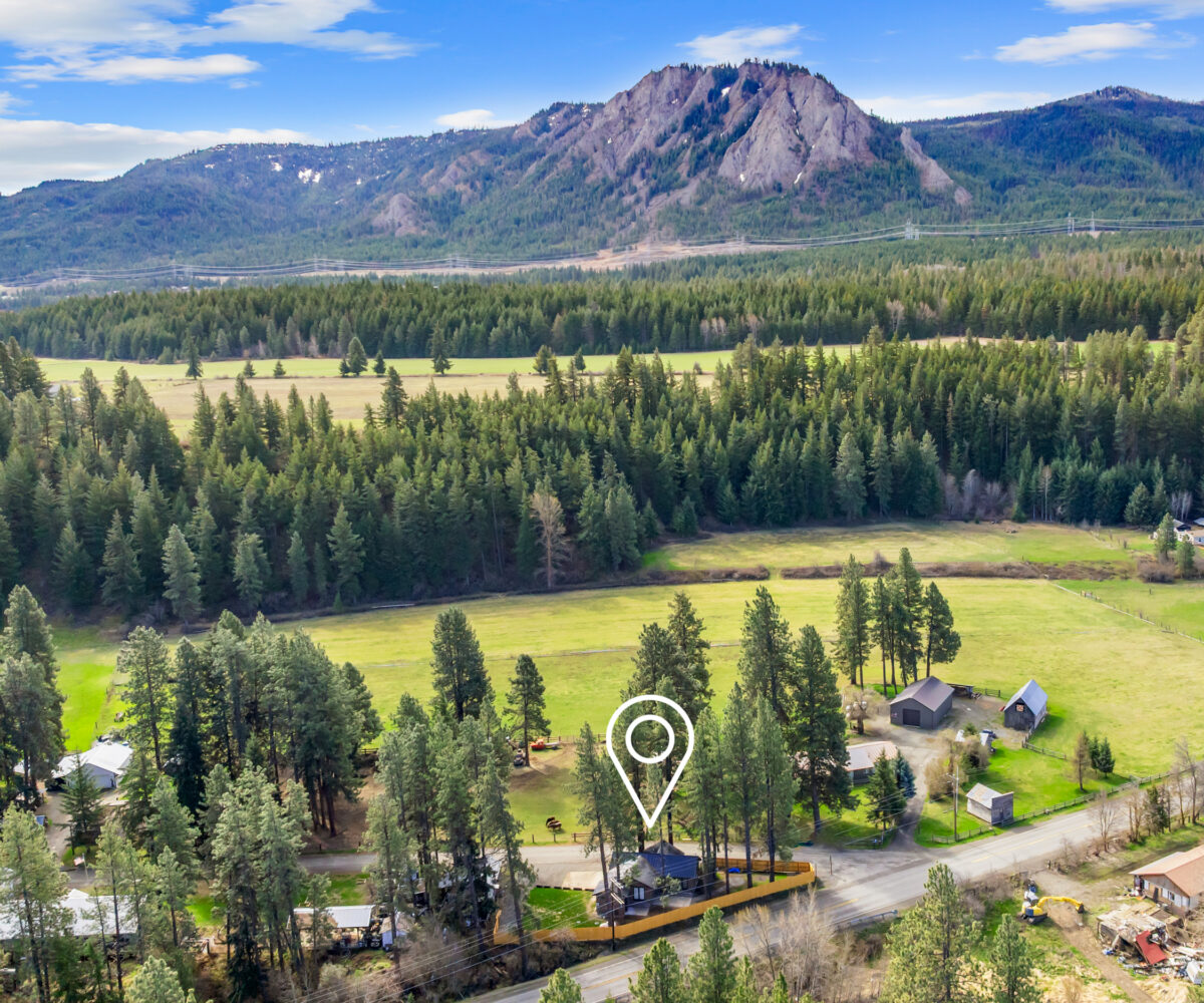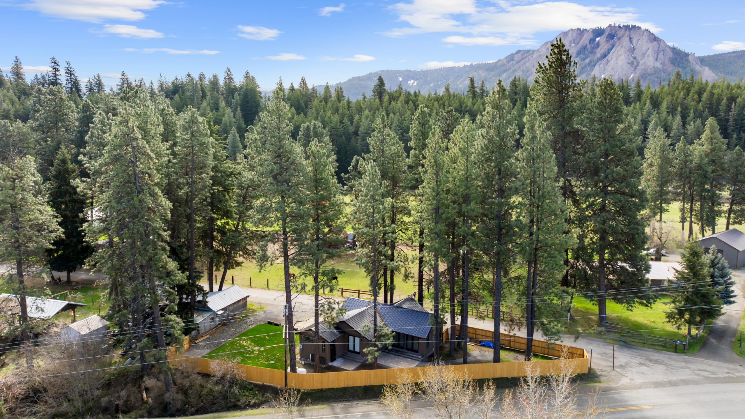 Turn key Cle Elum cabin, all ready to go for your weekend getaway, rental or easy living lifestyle! Tastefully renovated inside and out with new metal roof, new siding, all new interiors, Great Room kitchen with tongue & groove vaulted ceilings, stained accent beam, cozy fireplace, Milgard windows and sliders to back patios. Large primary suite offers 5-piece stone bathroom with freestanding tub, large tile shower and walk-in closet. 2nd bedroom with mountain and pastoral views with Ensuite tile bathroom. Surrounding vistas of Peoh Point, spacious, mostly fenced corner lot & new septic system. Gas ready firepit area waiting for your finishing touches. Minutes to Downtown Cle Elum, hiking, snow park and river!