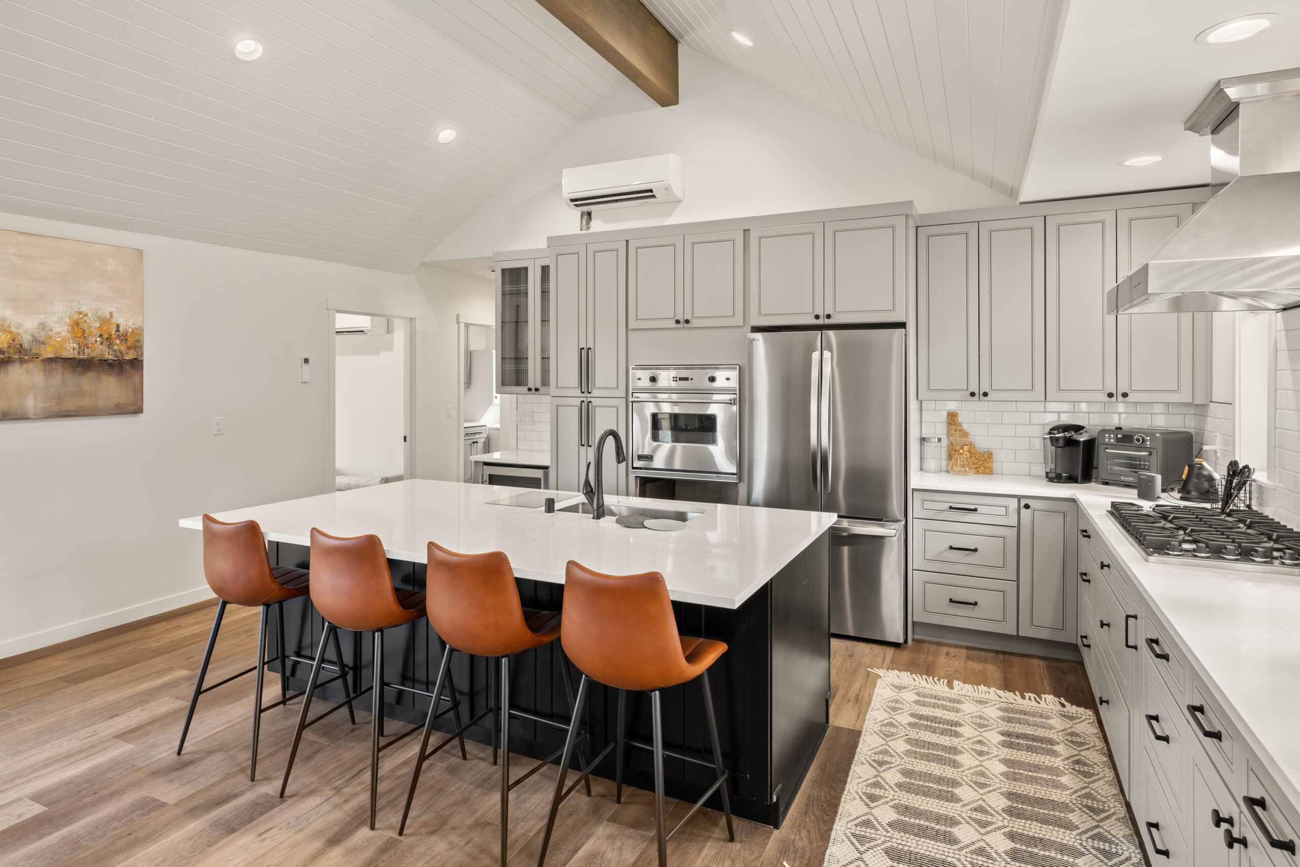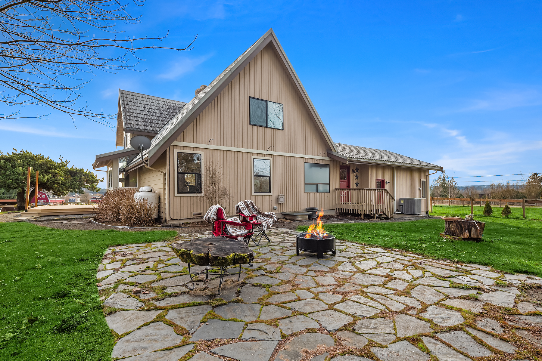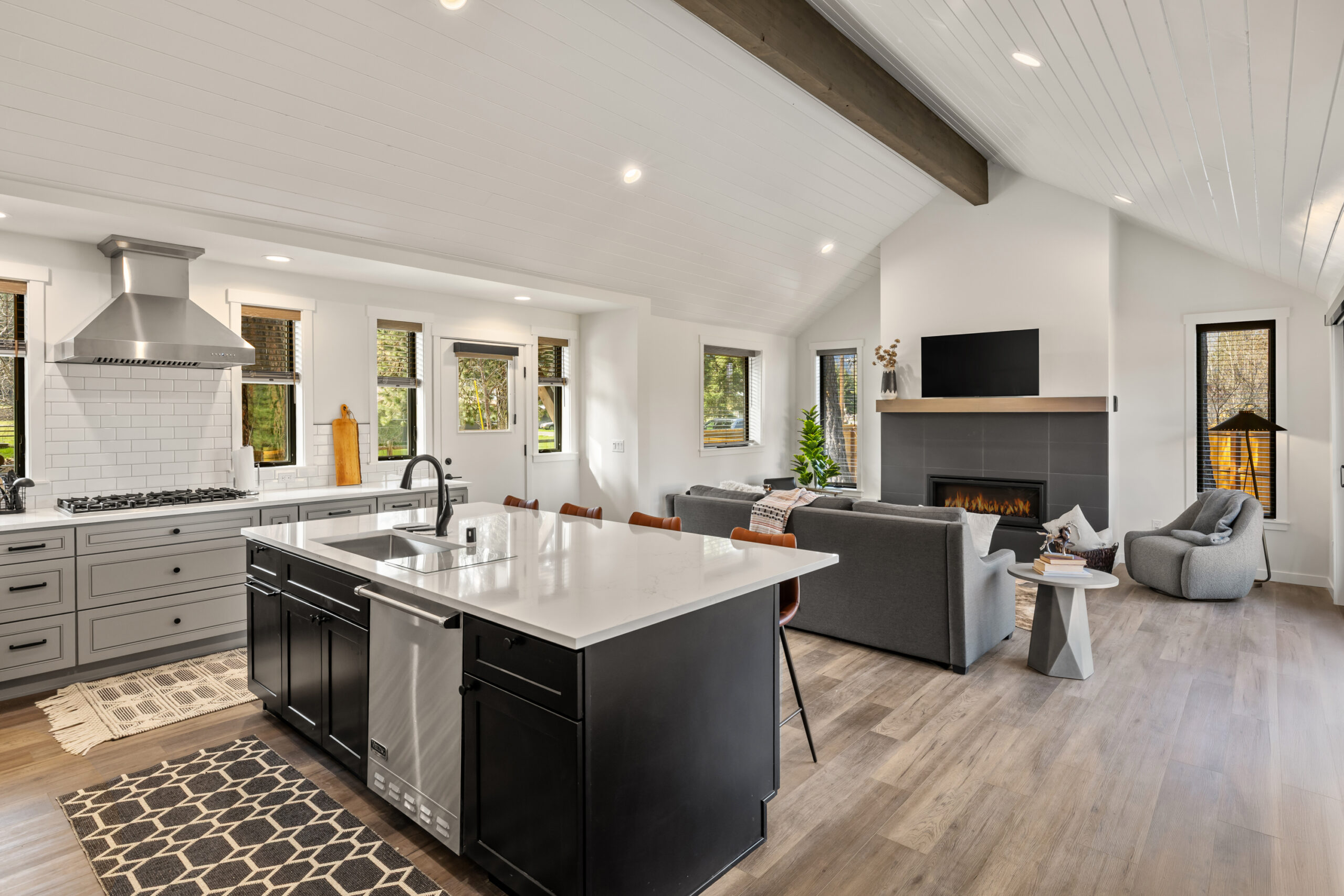 Turn key Cle Elum cabin, all ready to go for your weekend getaway, rental or easy living lifestyle! Tastefully renovated inside and out with new metal roof, new siding, all new interiors, Great Room kitchen with tongue & groove vaulted ceilings, stained accent beam, cozy fireplace, Milgard windows and sliders to back patios. Large primary suite offers 5-piece stone bathroom with freestanding tub, large tile shower and walk-in closet. 2nd bedroom with mountain and pastoral views with Ensuite tile bathroom. Surrounding vistas of Peoh Point, spacious, mostly fenced corner lot & new septic system. Gas ready firepit area waiting for your finishing touches. Minutes to Downtown Cle Elum, hiking, snow park and river!