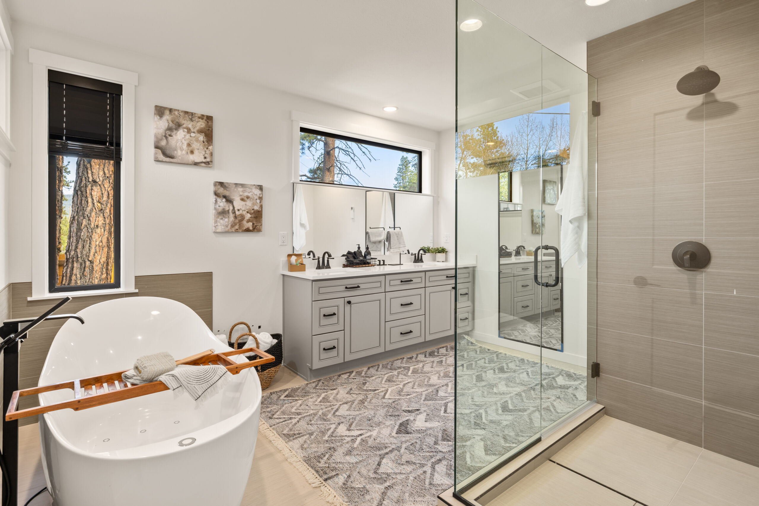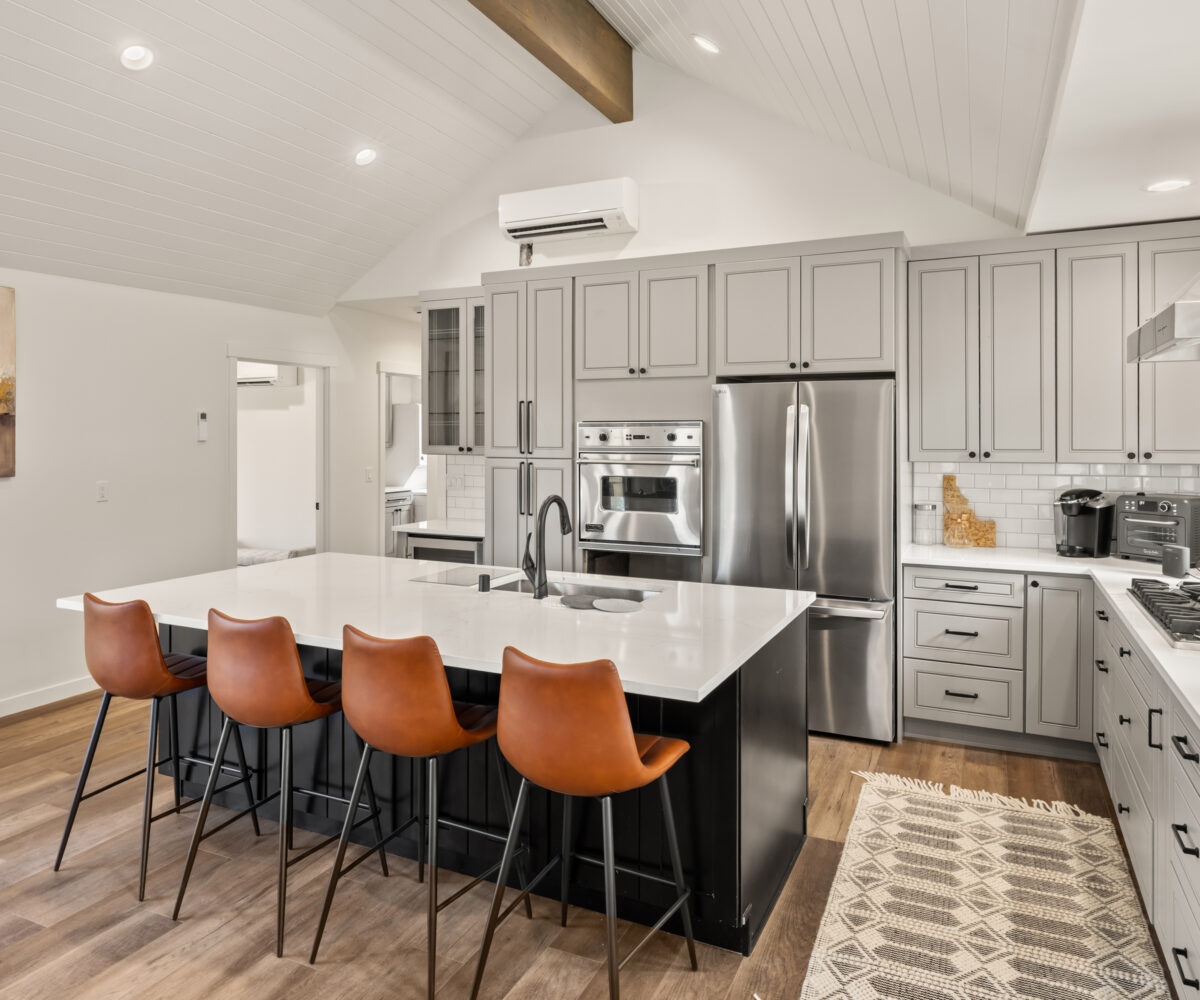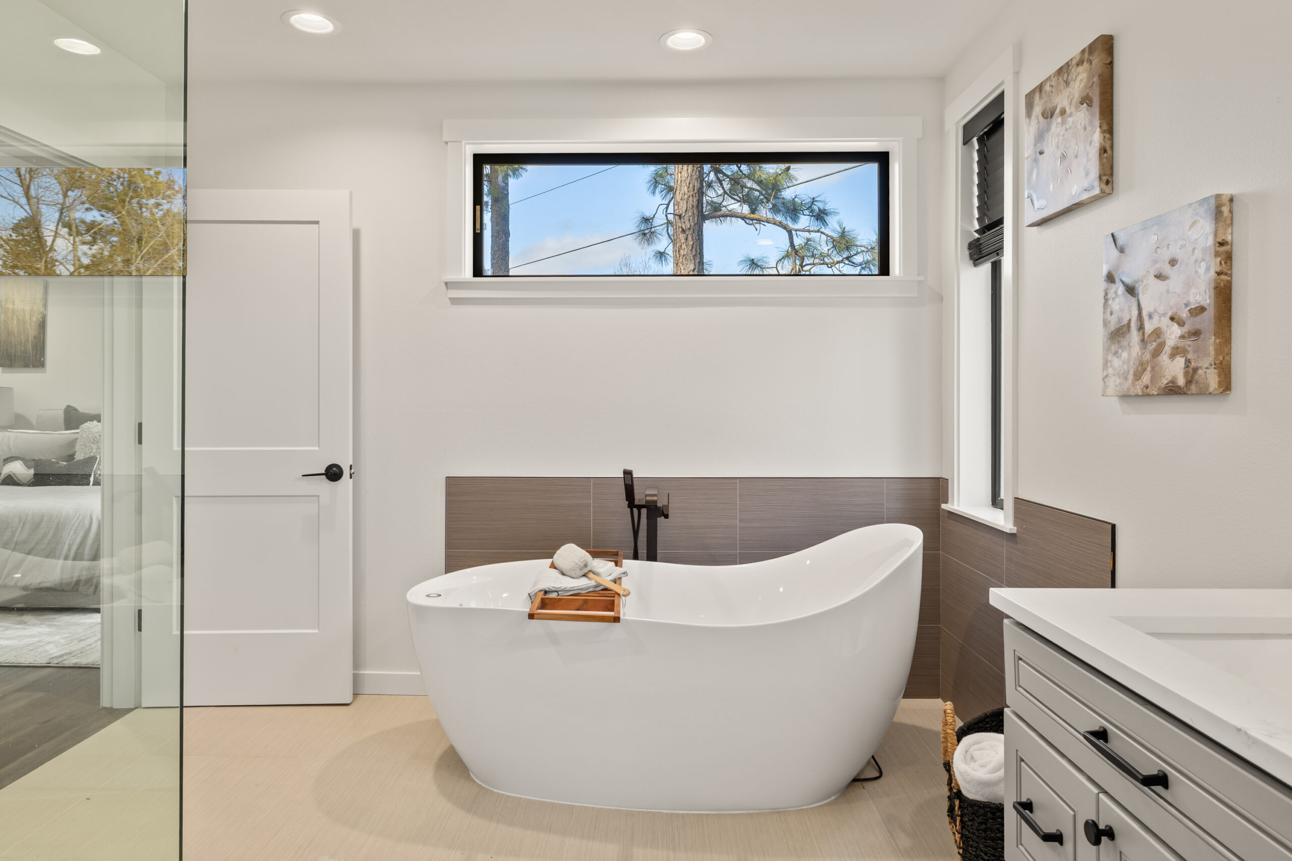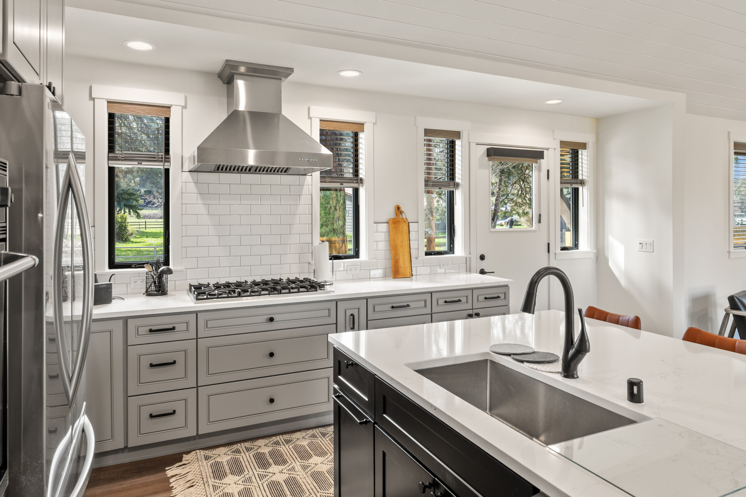Turn key Cle Elum cabin, all ready to go for your weekend getaway, rental or easy living lifestyle! Tastefully renovated inside and out with new metal roof, new siding, all new interiors, Great Room kitchen with tongue & groove vaulted ceilings, stained accent beam, cozy fireplace, Milgard windows and sliders to back patios. Large primary suite offers 5-piece stone bathroom with freestanding tub, large tile shower and walk-in closet. 2nd bedroom with mountain and pastoral views with Ensuite tile bathroom. Surrounding vistas of Peoh Point, spacious, mostly fenced corner lot & new septic system. Gas ready firepit area waiting for your finishing touches. Minutes to Downtown Cle Elum, hiking, snow park and river!