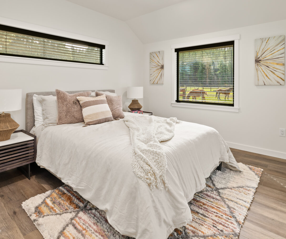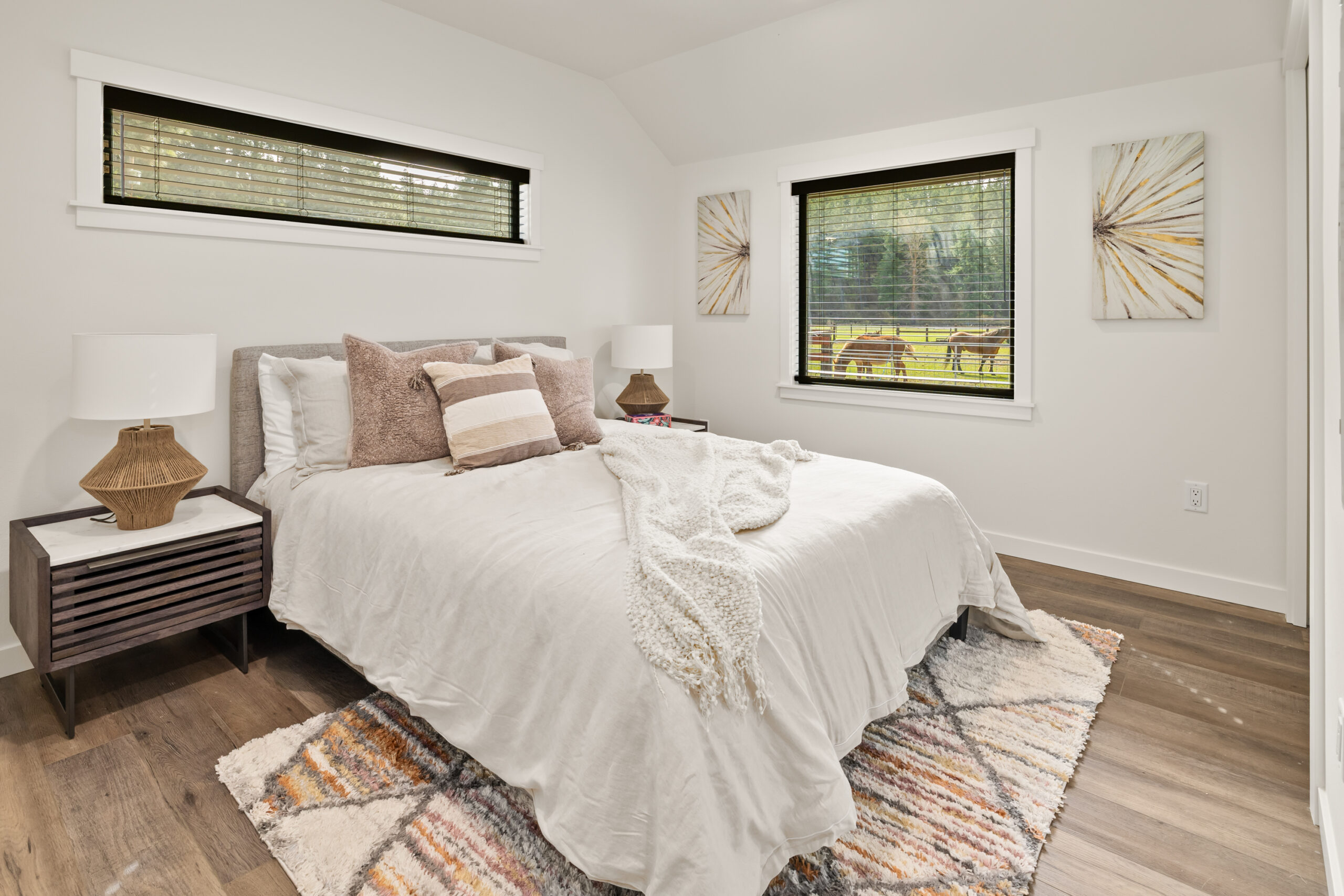 Landmark property at Webster Lake Estates nestled on 5 Pristine acres. Fenced and gated grounds offer something for everyone from the horse enthusiast to the gardener. Lovely 2 story home with main floor primary offering stone spa bath, dual walk-in closets and gas fireplace. Great Room design, custom alder cabinetry and millwork throughout, honed counters, warm palates and hardwoods. Main floor den/4th bedroom, laundry with custom cabinetry and folding area. Upper level offering 2 bedrooms with walk-in closets, loft space and full bath. 4 stall barn offering wash rack, heated tack, paddocks off stalls and 3/4 bath with laundry. Above barn 1 bed/1 bath apartment with great room concept. Additional mancave on upper with barn doors open to pastoral views. Mature landscaping, gated entry, dedicated bbq area, dream shop thoughtfully designed and executed. Simple perfection and timeless; built to last a lifetime.