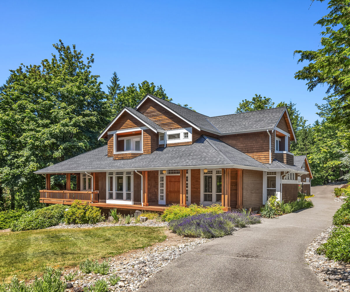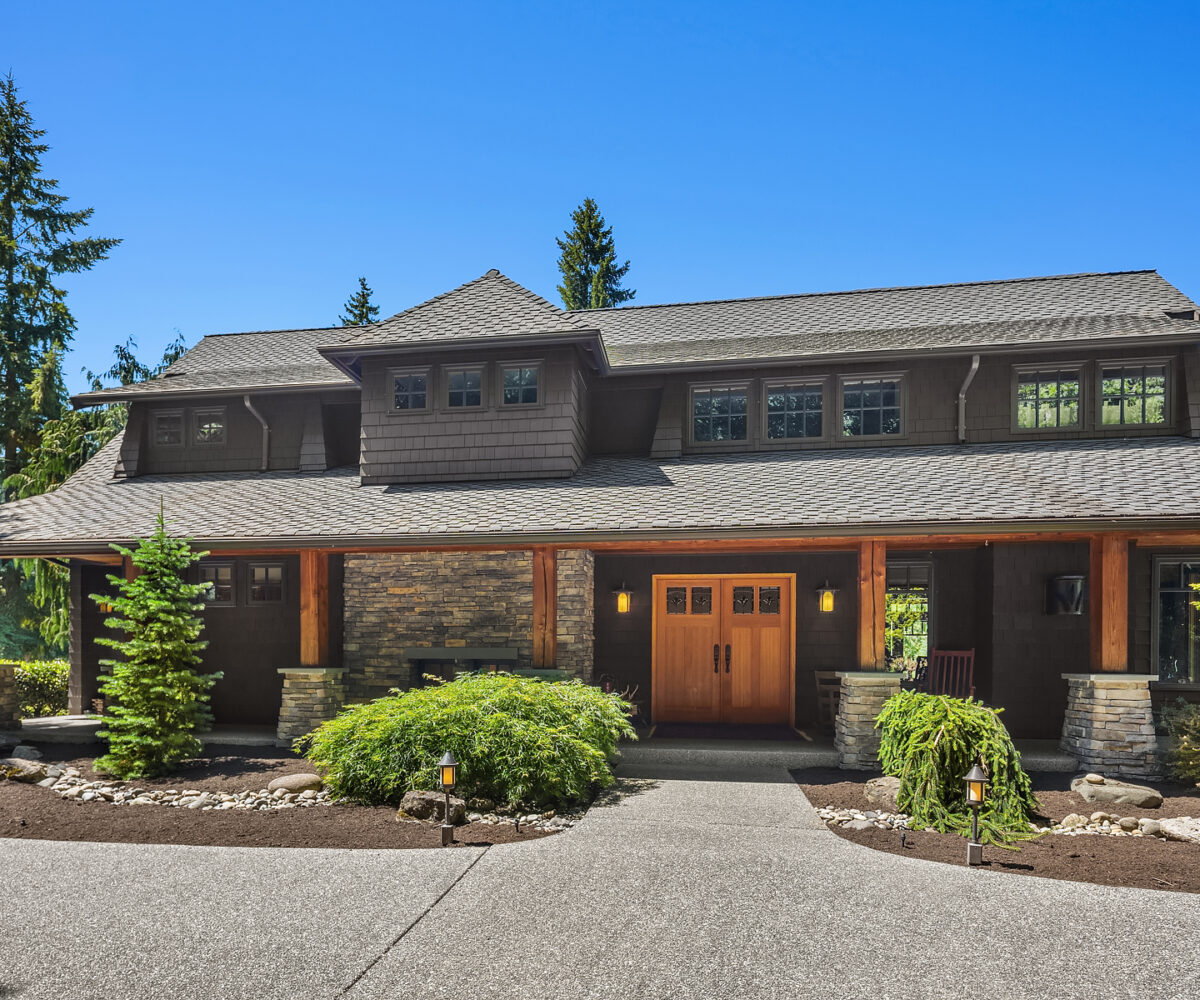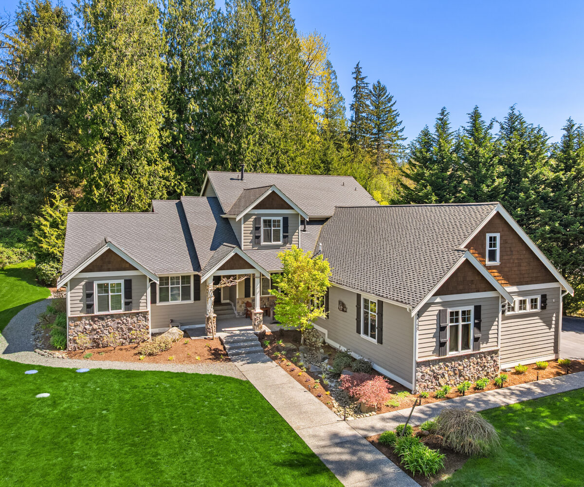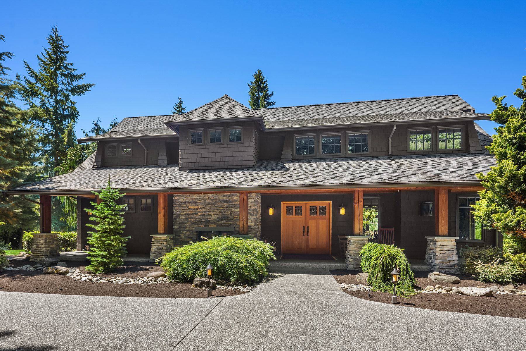 Timeless Treasure at Tiger Mountain. Craftsman custom home sited to perfection on 5 pastoral acres minutes to Downtown Issaquah. Picture perfect front porch entry opens into a masterpiece that will last the test of time. Formal dining & living rms. Kitchen Great Room boasts stone & wood timber w/ south facing foothill views & paragliders overhead. Main floor den opens to west facing patio. Primary suite with 5-piece stone bath, 2 additional upper bedrooms with Jack and Jill bath & 2nd den on upper level. Lower-level storage room plus large shop with cabinetry. Barn Pros 3 stall barn with tack room & loft. Paddock off stalls and ample parking for RV/Rec vehicles. Mature Landscaped grounds and gardens with sprinkler system, paved road complete this one-of-a-kind Estate.
