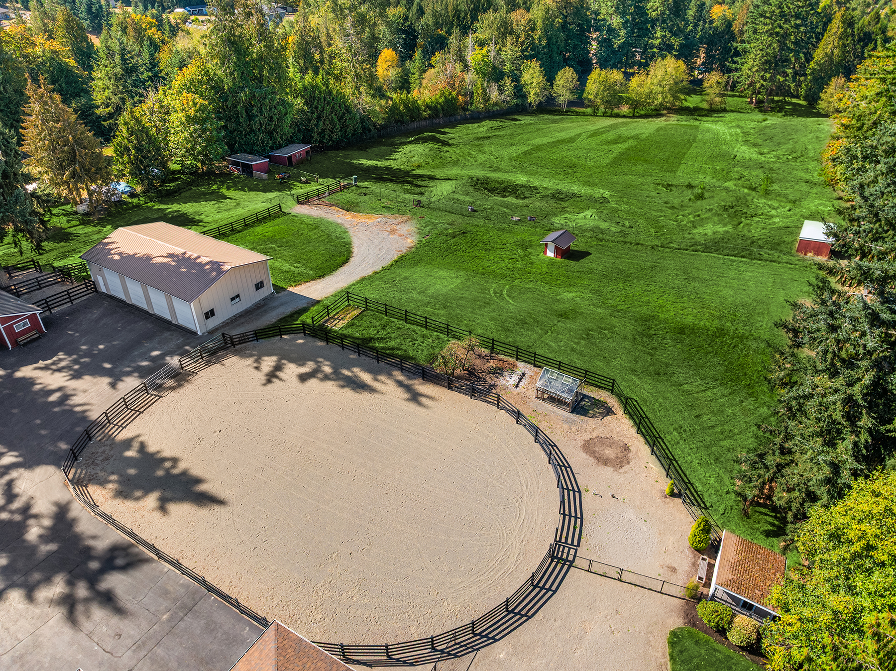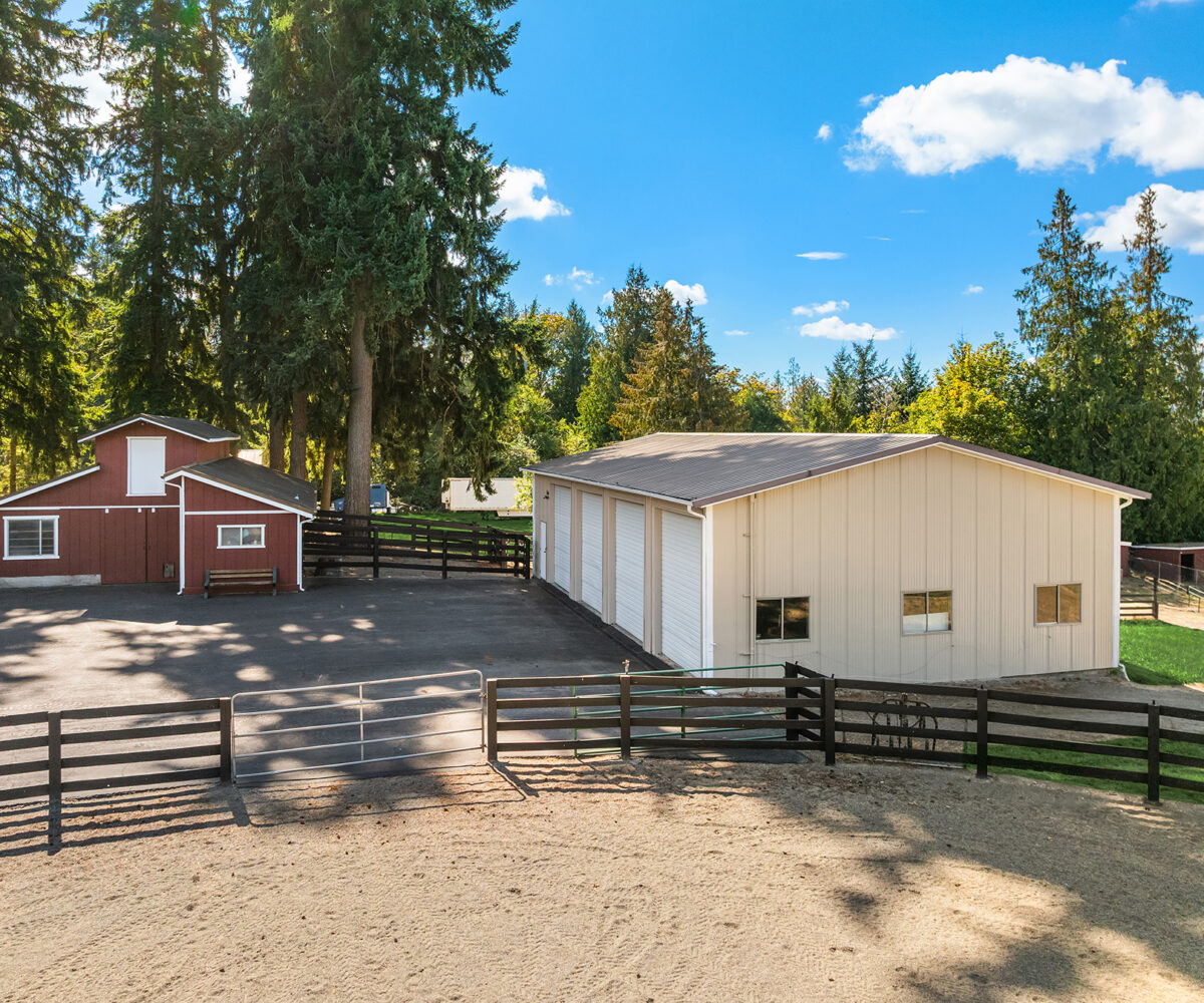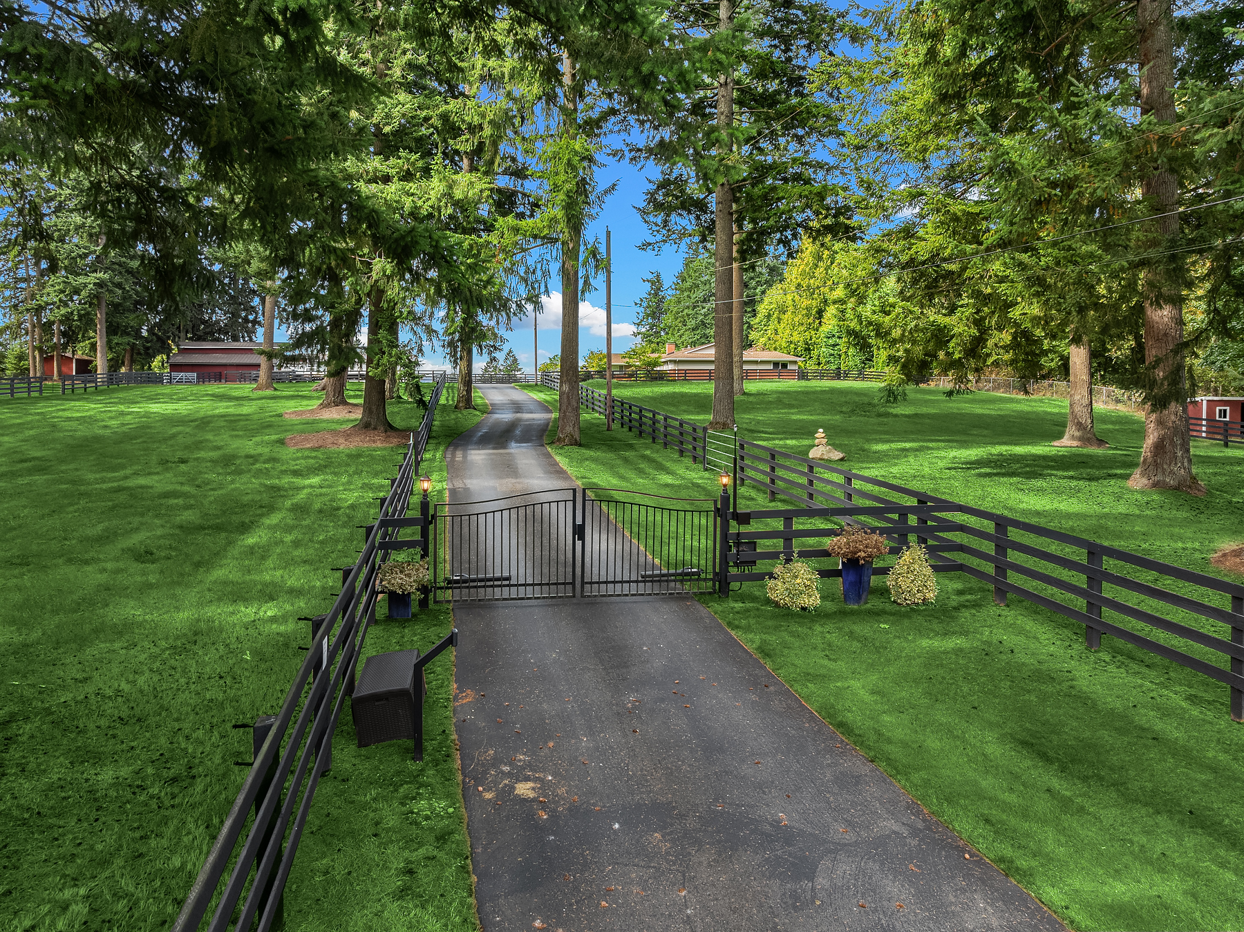 Presco Farm, first time available in 30 years. This exceptional equestrian estate sits on nearly 10 pristine acres in an area of distinguished properties. Comprised of three tax parcels, the setting offers privacy and beauty, featuring a paved, gated, tree-lined drive and four-rail fenced pastures. The thoughtfully updated single-level home showcases a spacious great room design, an open kitchen, four bedrooms, and two fireplaces. Enjoy year-round entertaining with a covered outdoor living area complete with a full kitchen and slab countertops. The fully fenced backyard is perfect for relaxation, offering a hot tub and firepit. Additional features include two covered parking spaces and an expansive four-bay shop with a car lift and a full upper-level storage area. Equestrian amenities abound with a seven-stall barn, outdoor arena, paddocks, and multiple fenced pastures – giving ample space to ride, roam, and enjoy this truly one-of-a-kind estate.