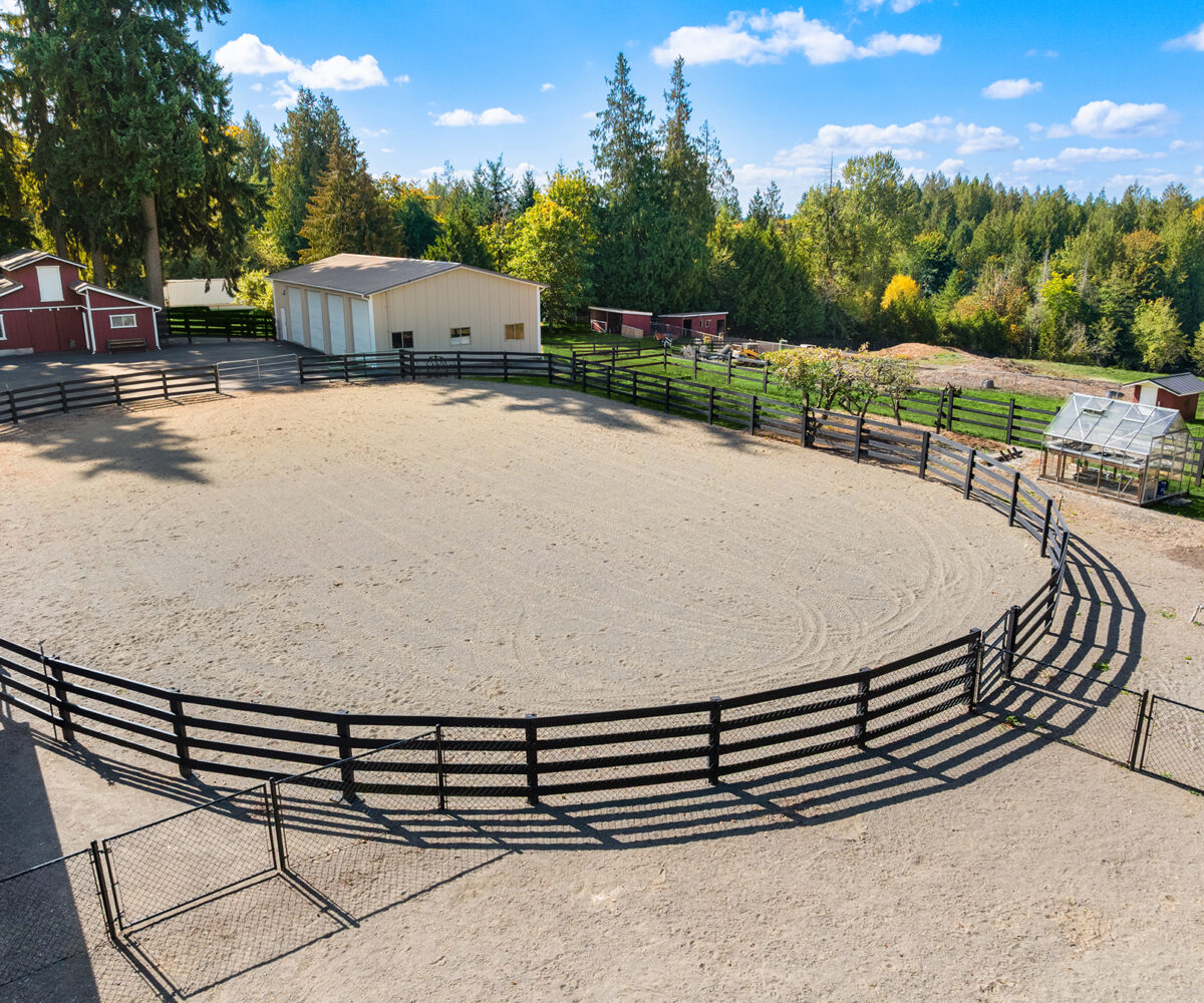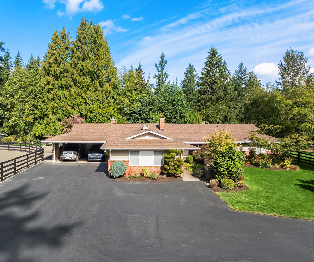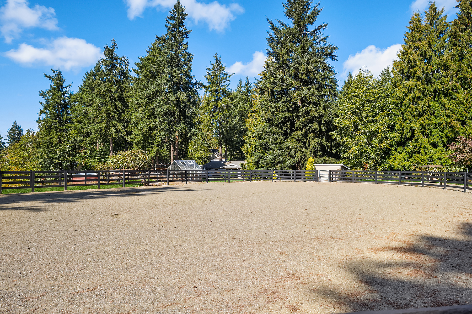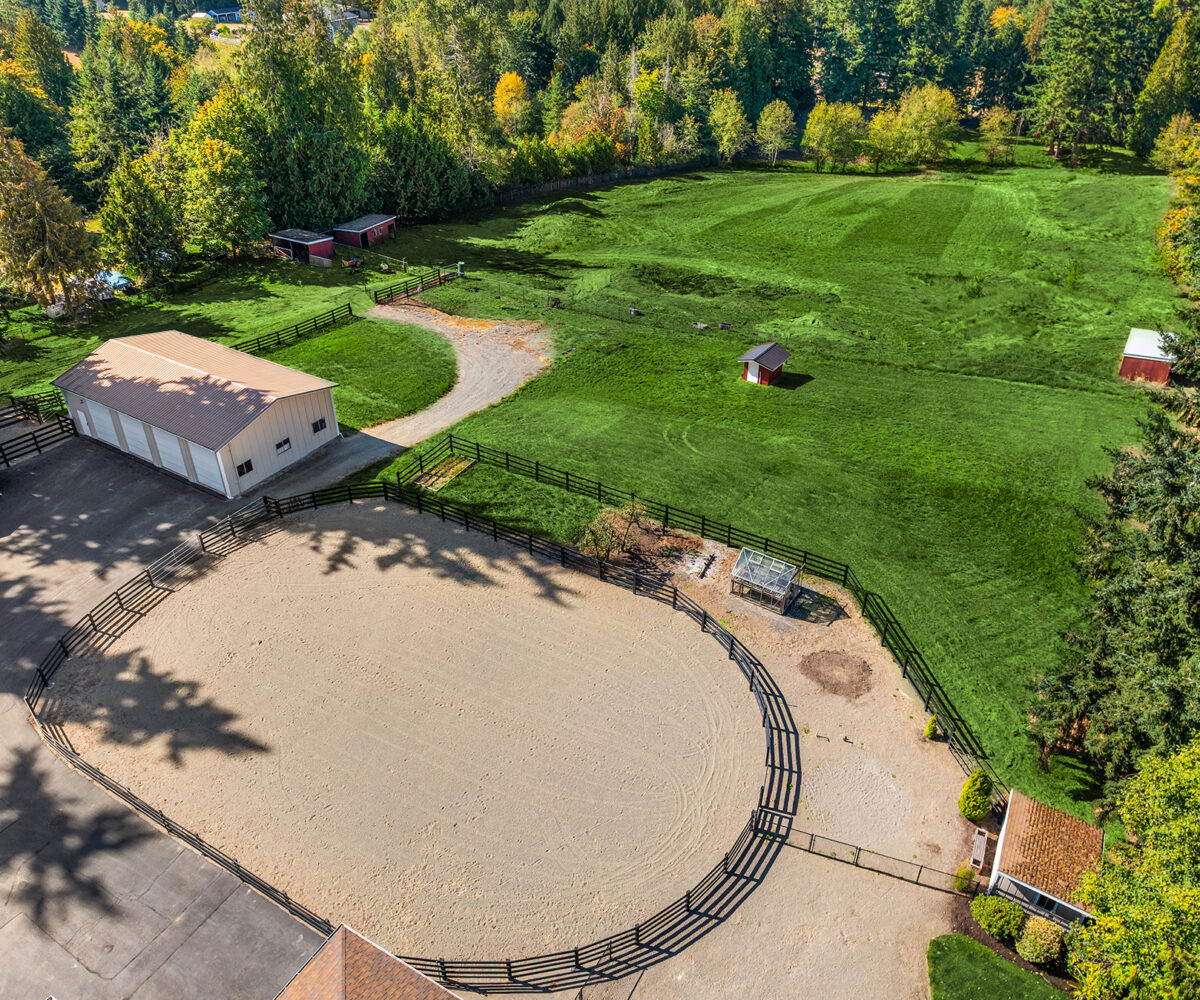 Presco Farm, first time available in 30 years. This exceptional equestrian estate sits on nearly 10 pristine acres in an area of distinguished properties. Comprised of three tax parcels, the setting offers privacy and beauty, featuring a paved, gated, tree-lined drive and four-rail fenced pastures. The thoughtfully updated single-level home showcases a spacious great room design, an open kitchen, four bedrooms, and two fireplaces. Enjoy year-round entertaining with a covered outdoor living area complete with a full kitchen and slab countertops. The fully fenced backyard is perfect for relaxation, offering a hot tub and firepit. Additional features include two covered parking spaces and an expansive four-bay shop with a car lift and a full upper-level storage area. Equestrian amenities abound with a seven-stall barn, outdoor arena, paddocks, and multiple fenced pastures – giving ample space to ride, roam, and enjoy this truly one-of-a-kind estate.