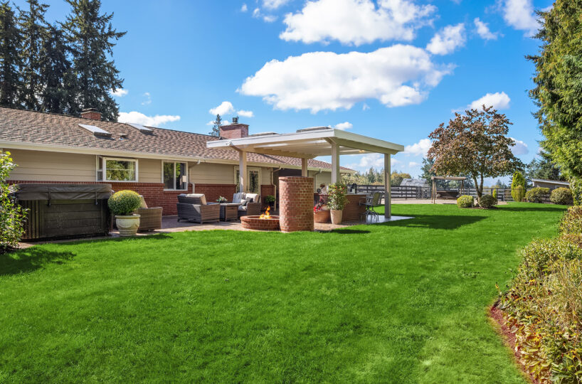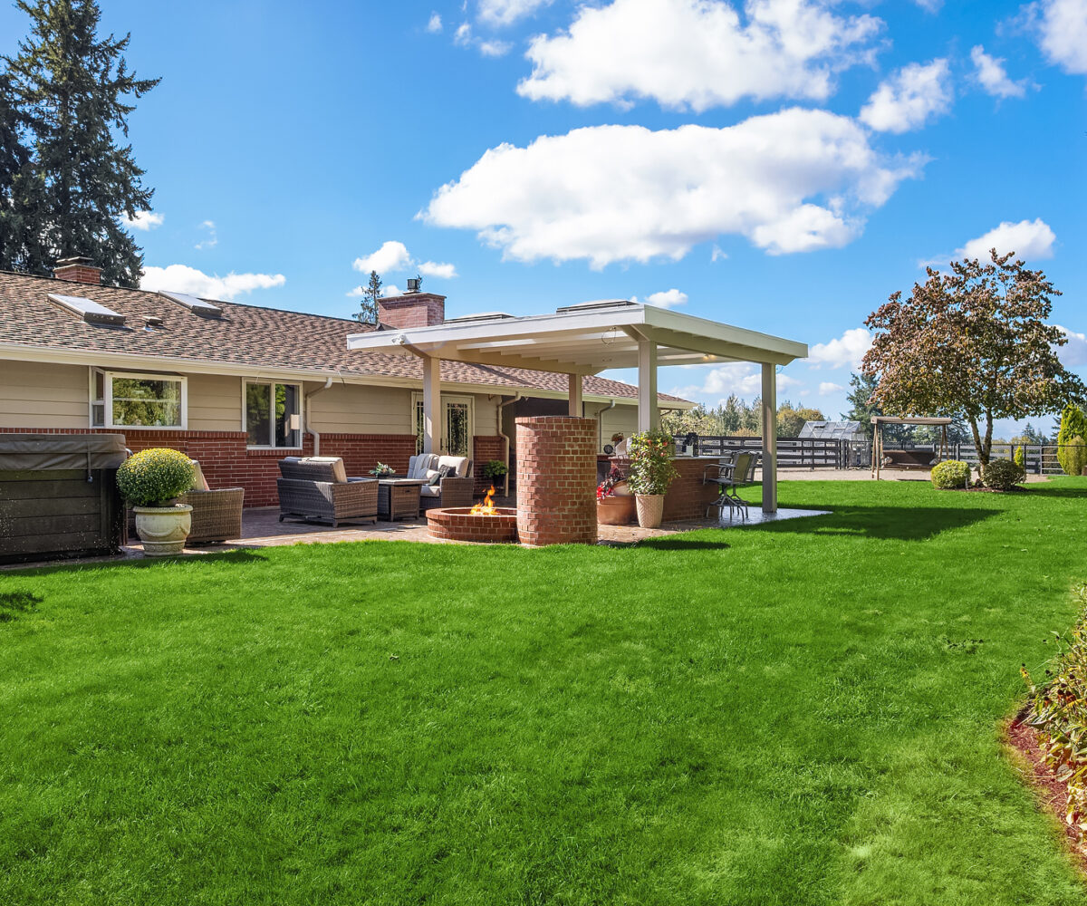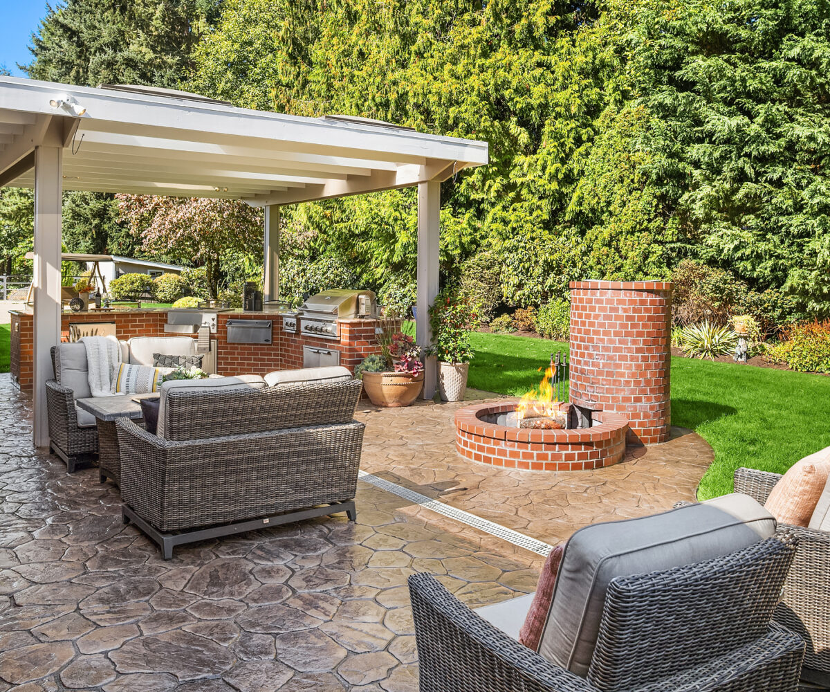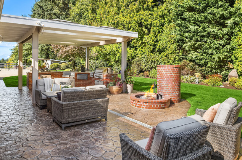 - Covered outdoor living with grand scale custom-built outdoor kitchen