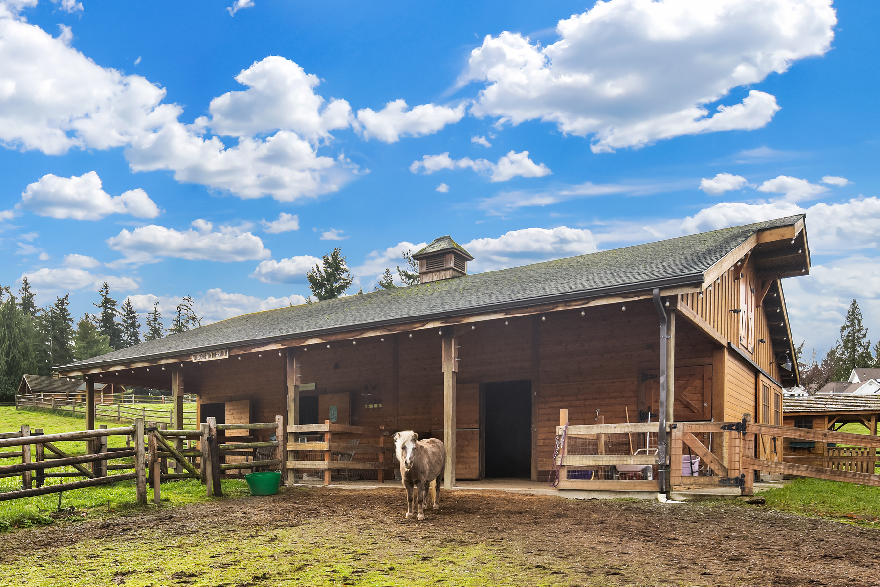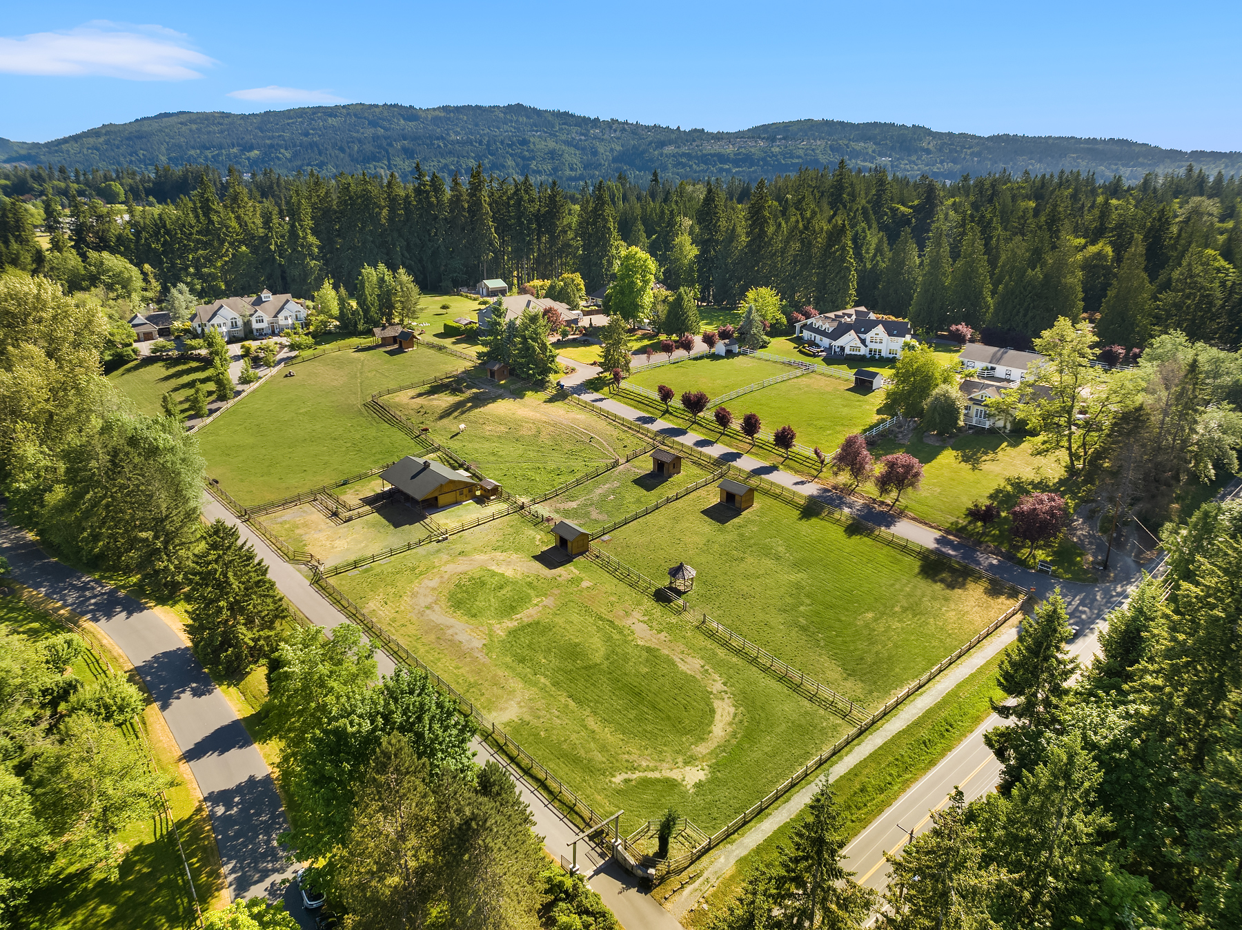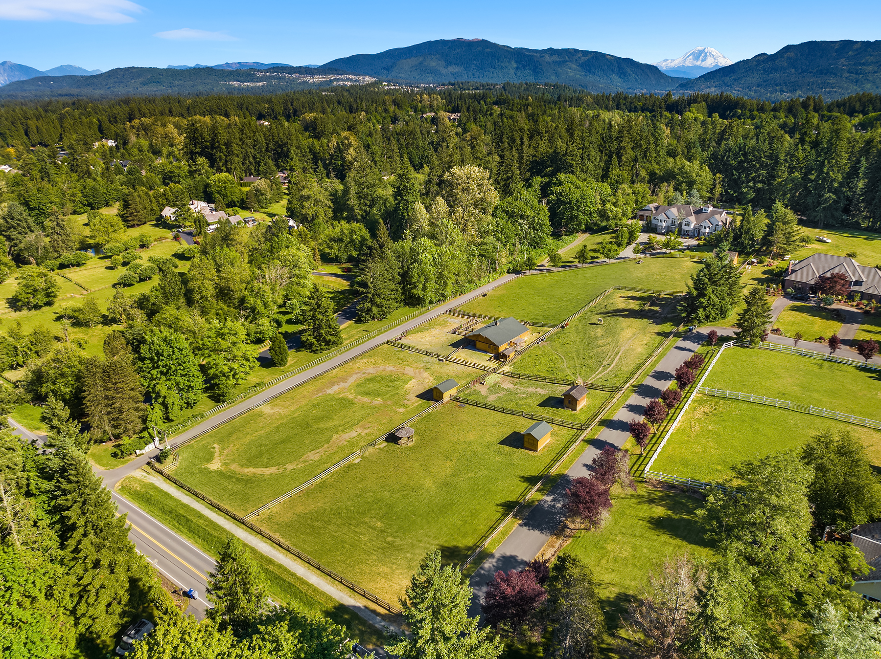 Welcome to a timeless masterpiece by Odegard Gockel, nestled in the heart of the Sammamish Plateau. This exceptional estate blends casual equestrian charm with refined luxury across nearly 6 acres of usable land. The 6,550 sq ft home offers a seamless layout, featuring formal and great room living spaces, a tranquil waterfall entry, and expansive amenities including a sparkling in-ground pool, full tennis/sport court, and private putt-putt golf. Equestrian components include 4 stall barn, wood rail fenced and cross fenced pastures, paddocks, storage, additional loafing sheds and outbuildings. Crafted by a Street of Dreams builder, this estate is a rare fusion of elegance and versatility. Whether your lifestyle calls for privacy, space for horses or farm animals, or simply relaxing poolside, this property delivers boundless opportunities—all just minutes from I-90 and in city conveniences.