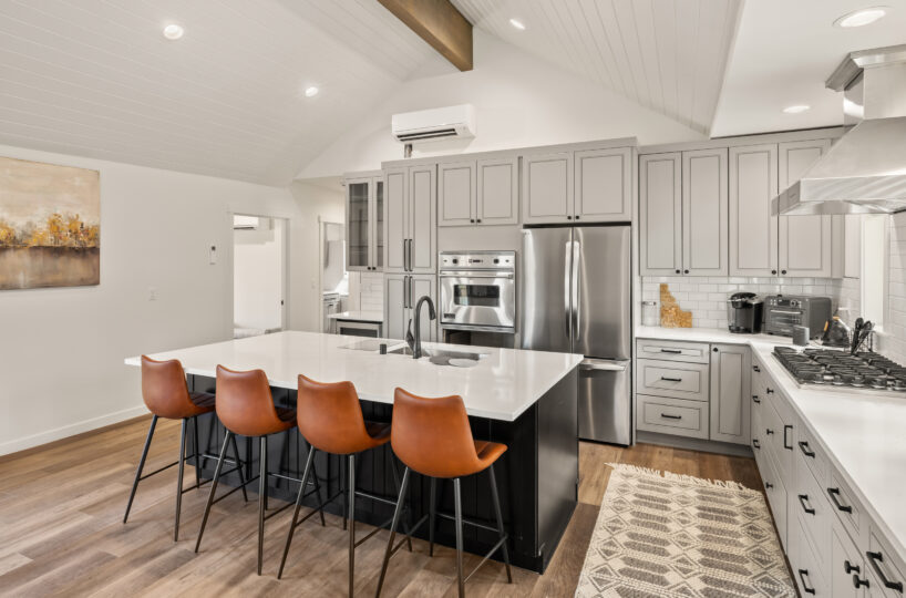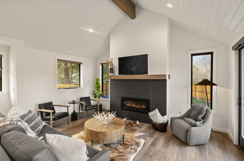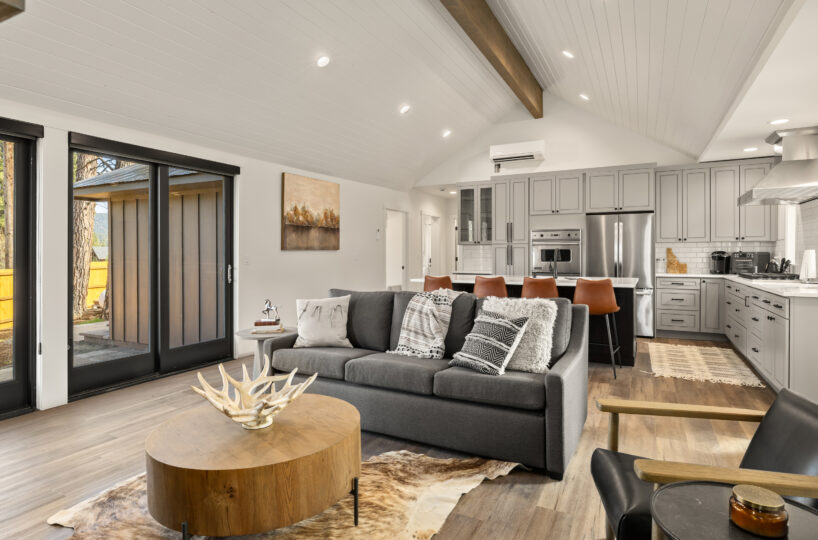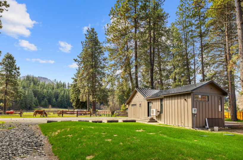 Turn key Cle Elum cabin, all ready to go for your weekend getaway, rental or easy living lifestyle! Tastefully renovated inside and out with new metal roof, new siding, all new interiors, Great Room kitchen with tongue & groove vaulted ceilings, stained accent beam, cozy fireplace, Milgard windows and sliders to back patios. Large primary suite offers 5-piece stone bathroom with freestanding tub, large tile shower and walk-in closet. 2nd bedroom with mountain and pastoral views with Ensuite tile bathroom. Surrounding vistas of Peoh Point, spacious, mostly fenced corner lot & new septic system. Gas ready firepit area waiting for your finishing touches. Minutes to Downtown Cle Elum, hiking, snow park and river!