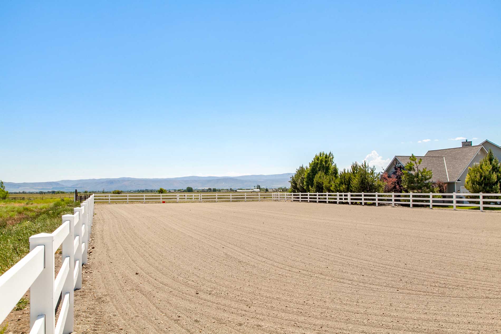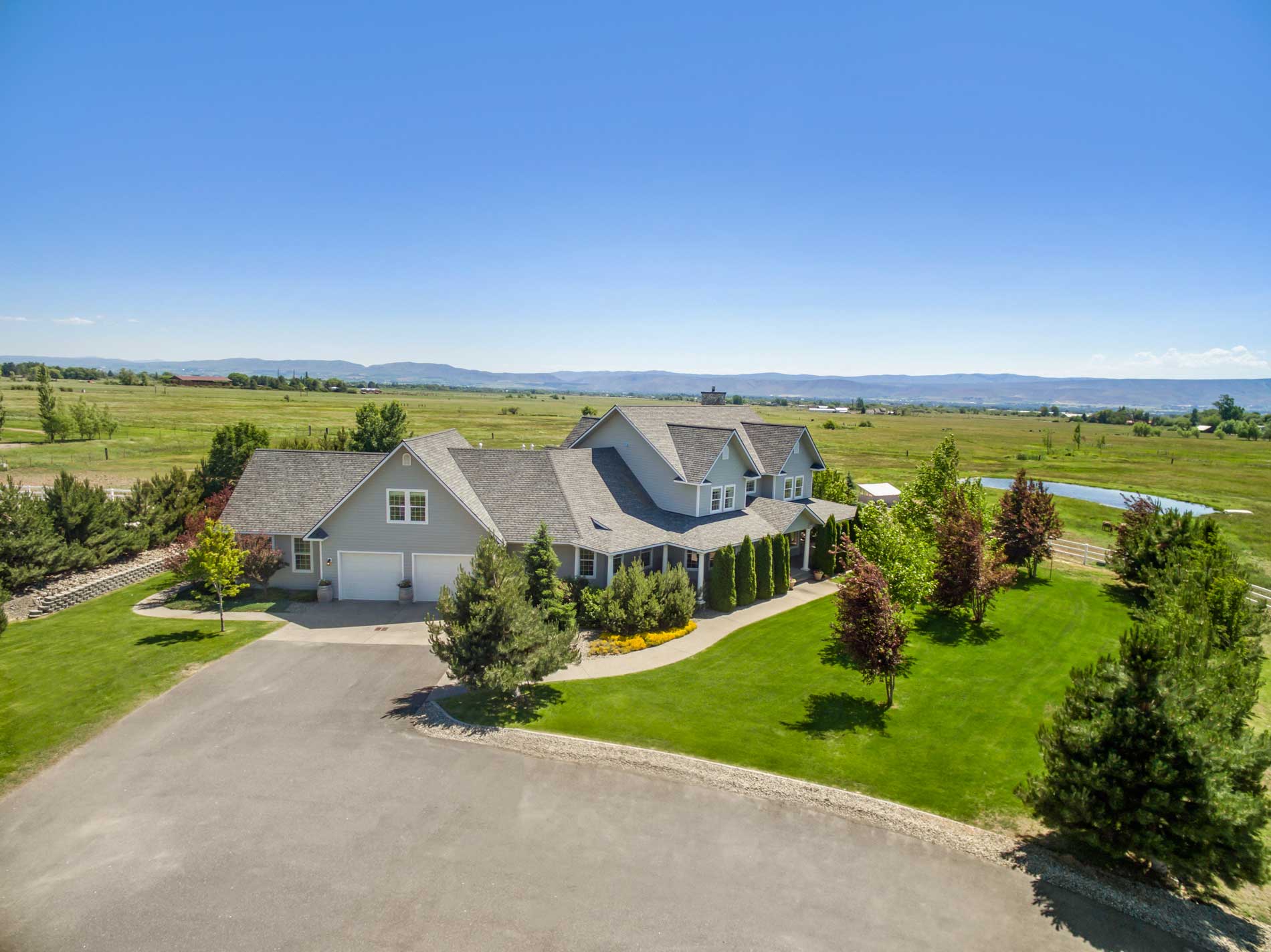 Escape to fine Country Living on 16++ VIEW acres! Spacious Georgian inspired Farmhouse perfectly nestled onto this level pastoral site. Stately full length covered porch welcomes you into voluminous open spaces and tremendous light filled custom home. Main floor master suite, inviting Great Room kitchen living with easy access out to sprawling grounds and gardens. 100 X 200 outdoor sand arena, large fenced pastures, Fresh water pond, caretakers apt, multiple bay RV barn/shop and Creekside setting.
