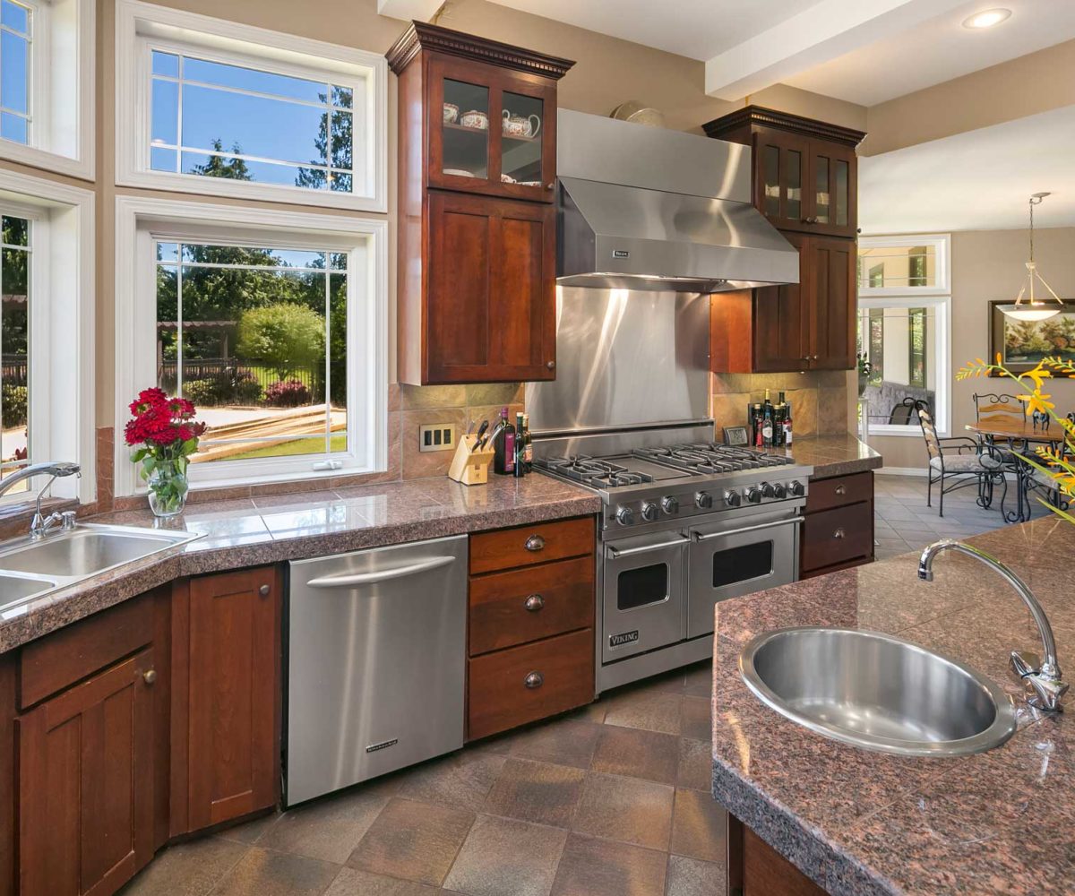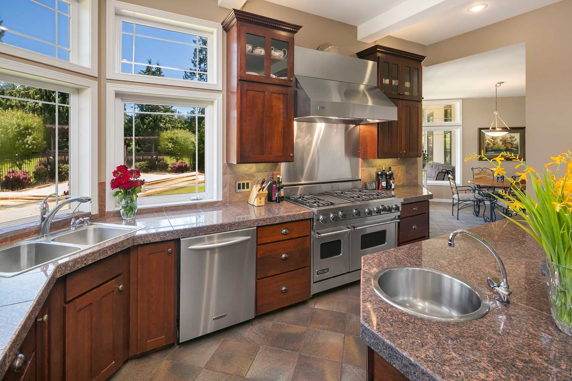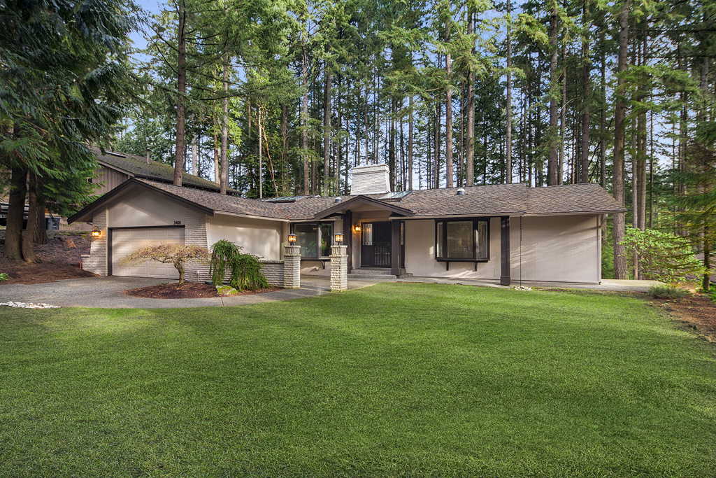 Prime Bellevue location and a timeless Neoclassic in Bridle Trails. 3000+ SF daylight rambler home, relevant updates, dramatic vaulted ceilings, walls of windows with a forested backdrop. Bellevue schools and Cherry Crest Elementary