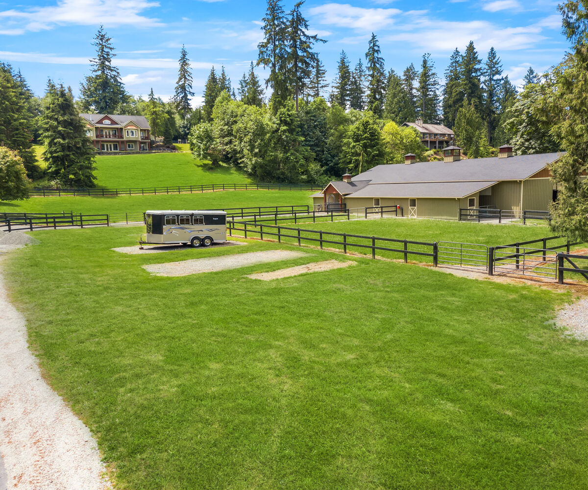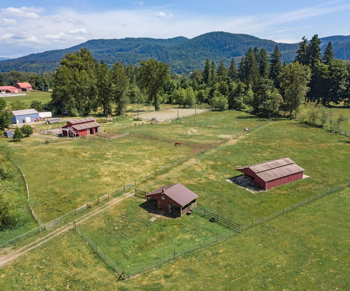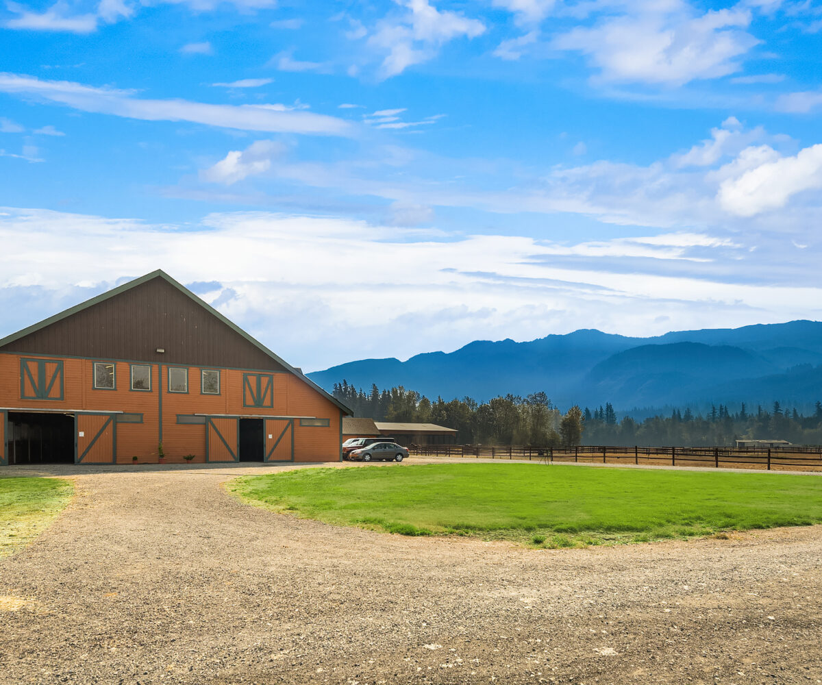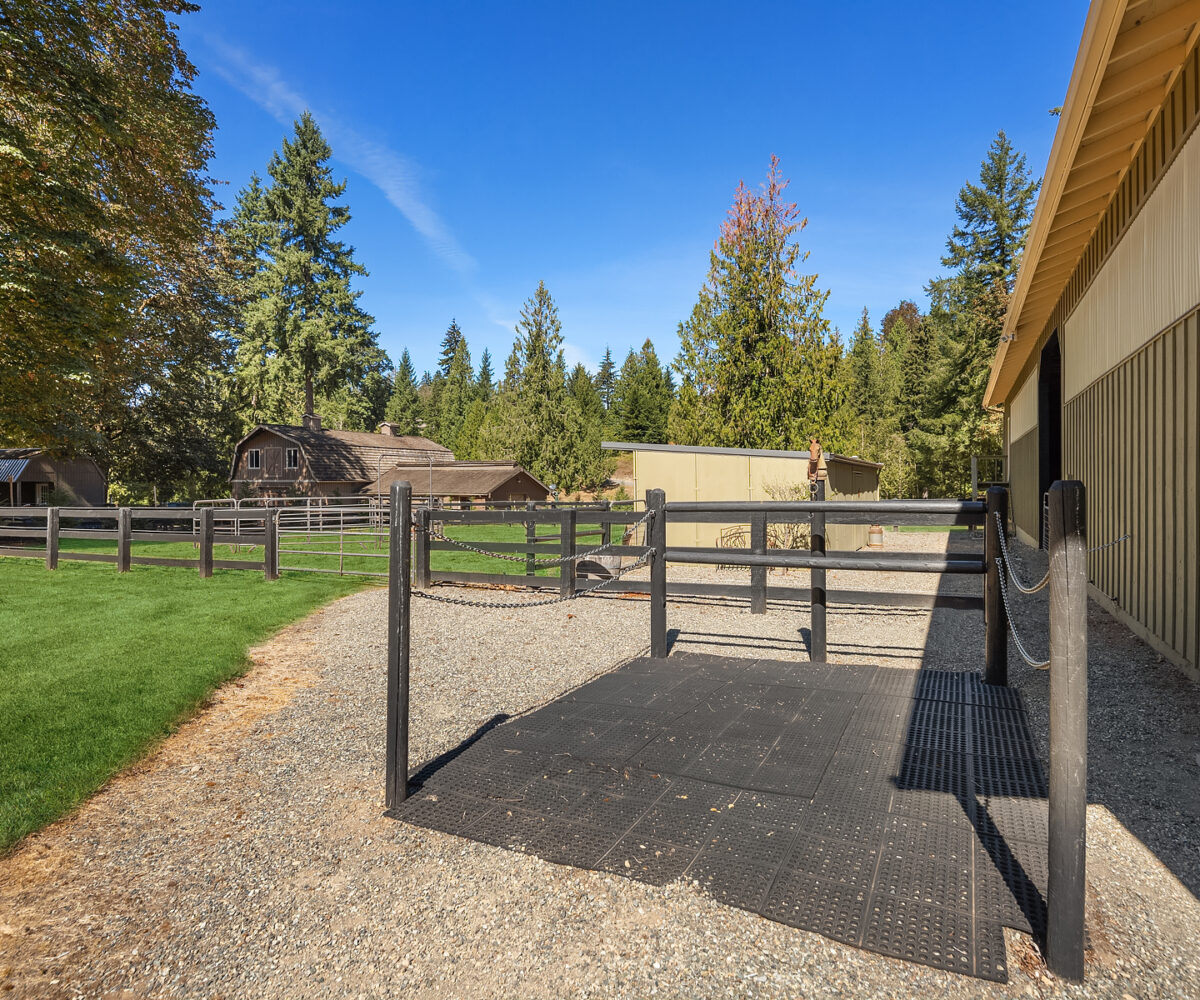 Sky River Equestrian Center. Premier horse facility on 23+ acres within the gated community of Sky River Estates. 50 Stall dual aisle barn, 2 covered arenas! Perfect multiple discipline facility. Heated tack rooms, blanket room, dual wash racks, multiple grooming bays & shoeing bay. Heated lounge, massive hay loft and 3 onsite apartments perfect for caretaker or trainer residence. 80’x180′ Covered dressage arena with entire short wall of mirrors. Additional gorgeous 100’x 216′ covered arena. 50′ Round pen, 12 mud-free gravel paddocks, multiple grass pastures. Slow feeder boxes and heated automatic waterers in stalls & paddocks. 450+ frontage feet on the Skykomish River and access to acres of trails from property.