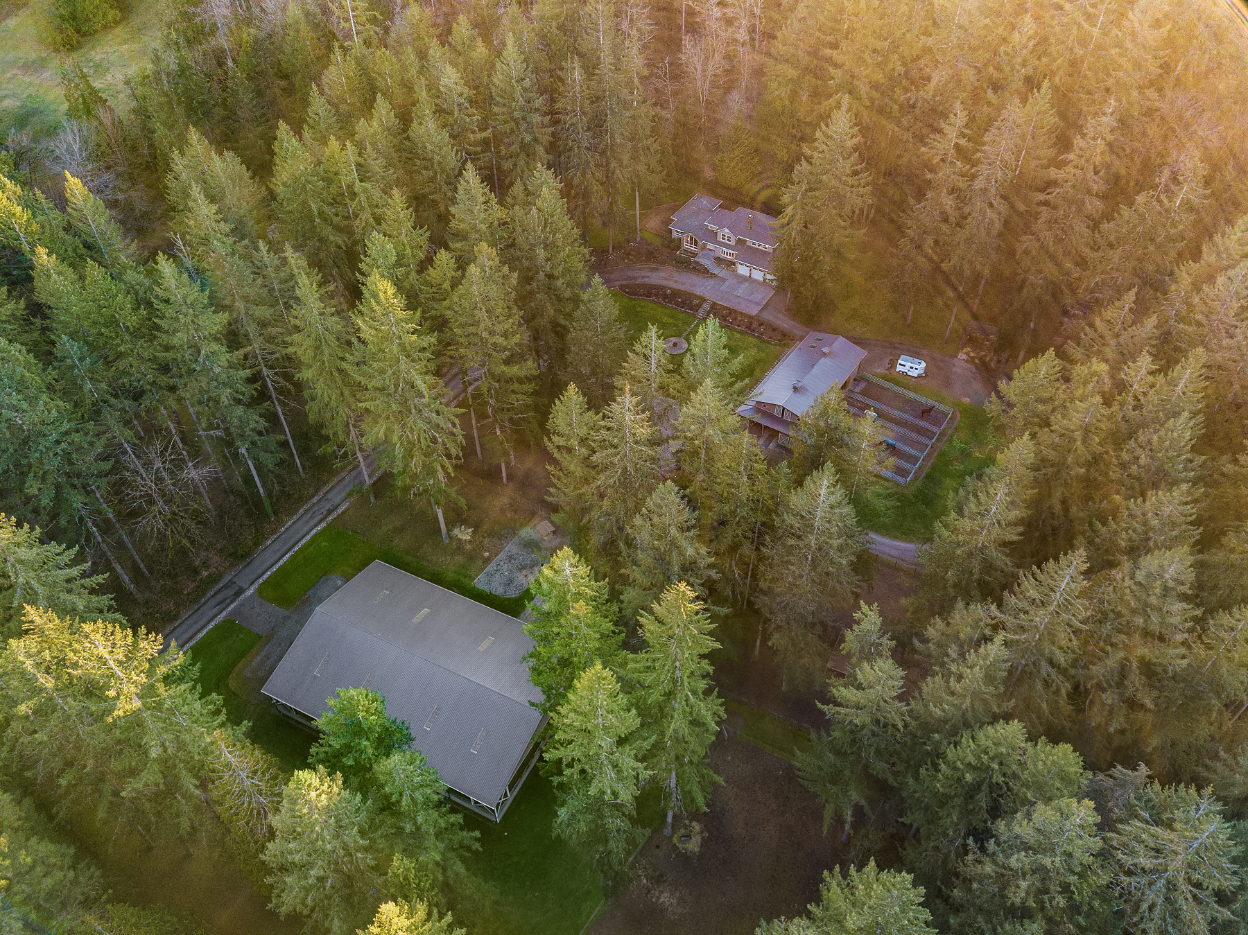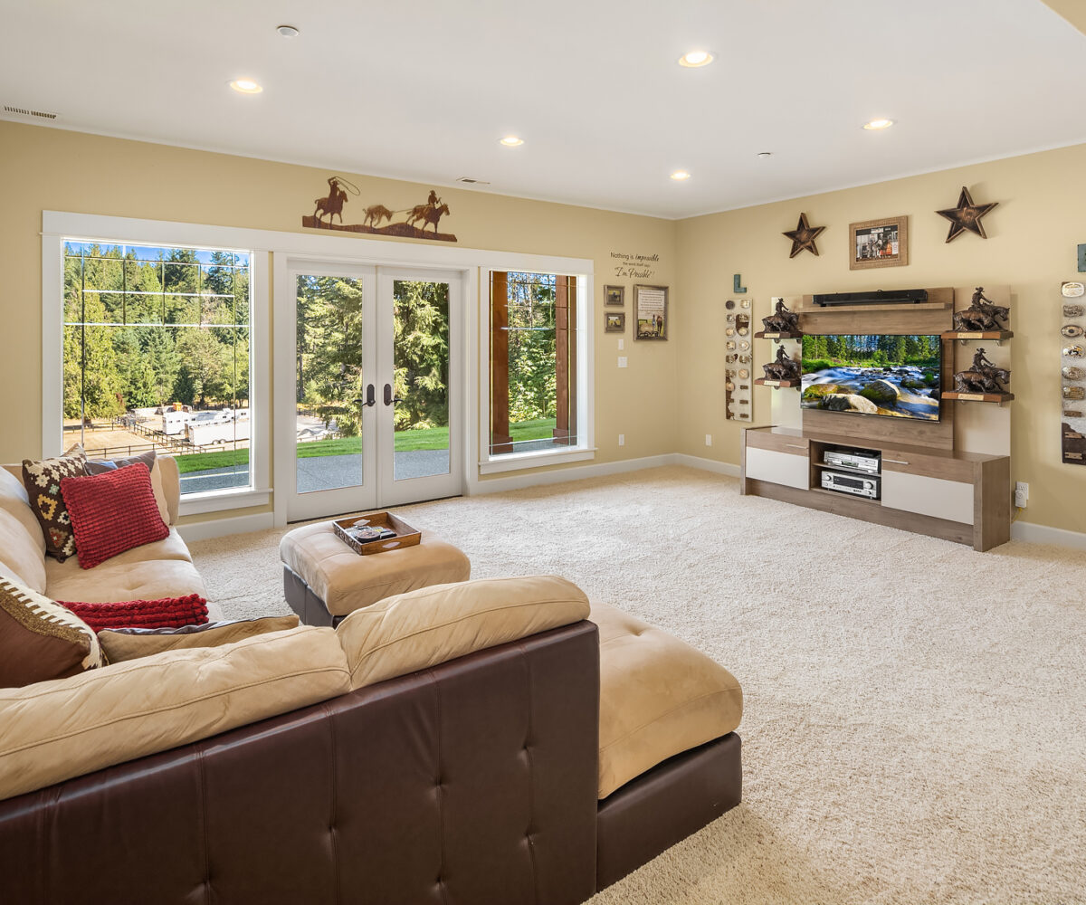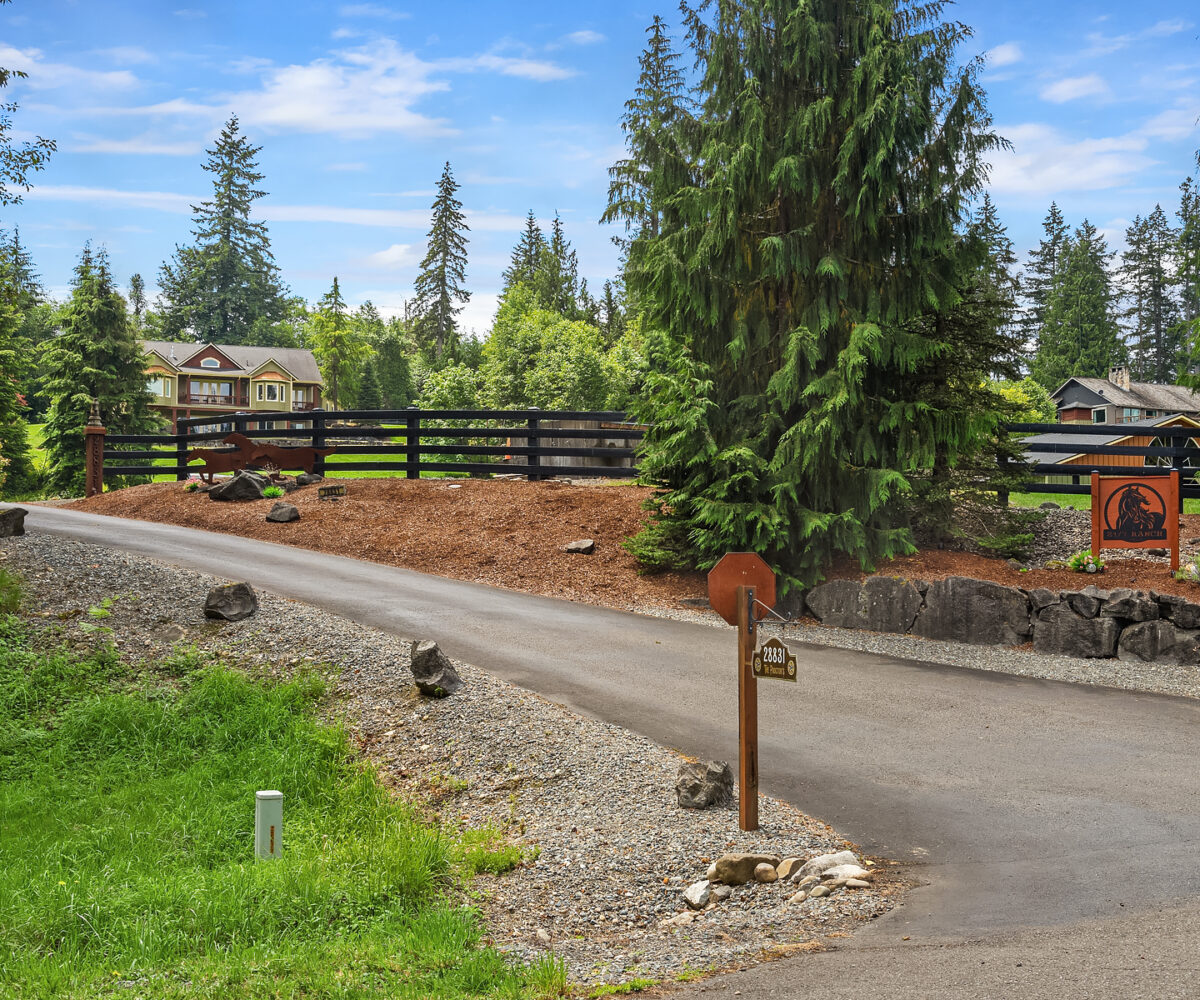 Sky River Equestrian Center. Premier horse facility on 23+ acres within the gated community of Sky River Estates. 50 Stall dual aisle barn, 2 covered arenas! Perfect multiple discipline facility. Heated tack rooms, blanket room, dual wash racks, multiple grooming bays & shoeing bay. Heated lounge, massive hay loft and 3 onsite apartments perfect for caretaker or trainer residence. 80’x180′ Covered dressage arena with entire short wall of mirrors. Additional gorgeous 100’x 216′ covered arena. 50′ Round pen, 12 mud-free gravel paddocks, multiple grass pastures. Slow feeder boxes and heated automatic waterers in stalls & paddocks. 450+ frontage feet on the Skykomish River and access to acres of trails from property.