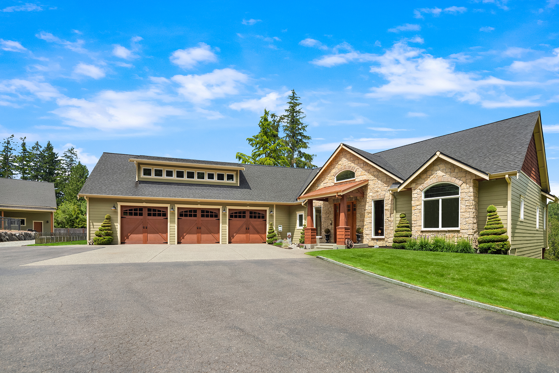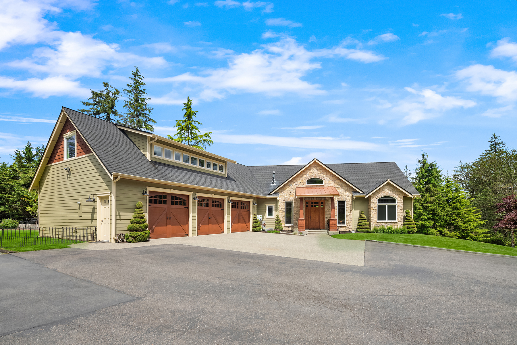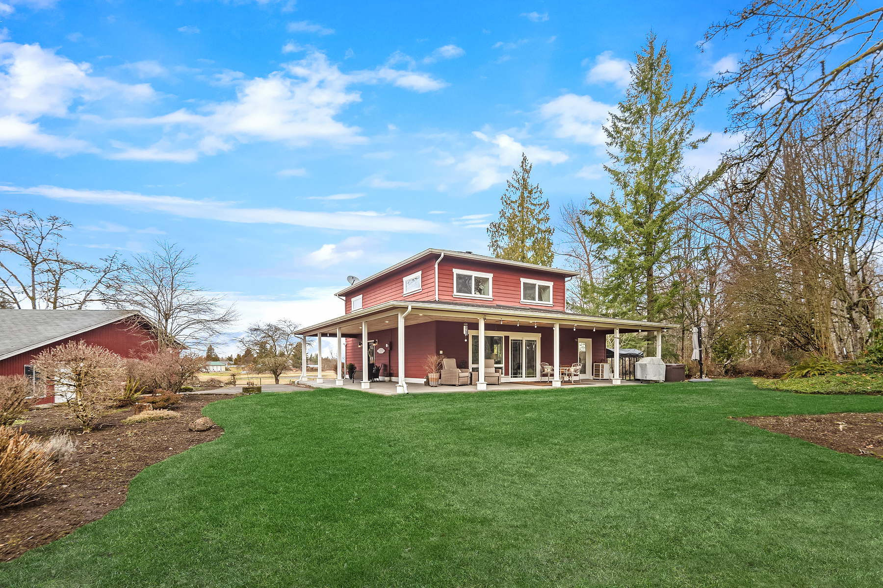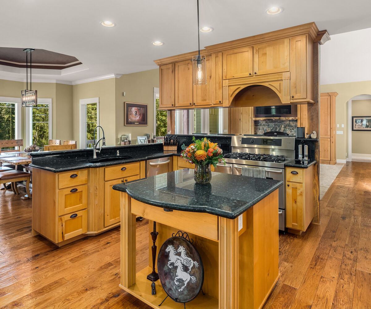 Fine Equestrian living located in idyllic Redmond location adjoining Soaring Eagle Park. Updated custom home with main floor primary suite, 5 piece spa stone bath & Chefs slab kitchen. Great Room design with fireplace, multiple French doors to deck with formal dining & living rooms. Dual staircase, Hardwoods throughout main level, bonus room up & pastoral views from most rooms. Matching 5 stall barn with paddocks, heated tack room, wash rack, hay loft with 1/2 bath & finished studio, additional en-suite guest quarters with 3/4 bathroom. Sought after direct trail access to 600 acre Soaring Eagle Park, 80×120 Covered arena with quality no water footing, fenced and cross fenced pastures, loafing sheds and a superb location down dead-end paved road offering uncompromised privacy.