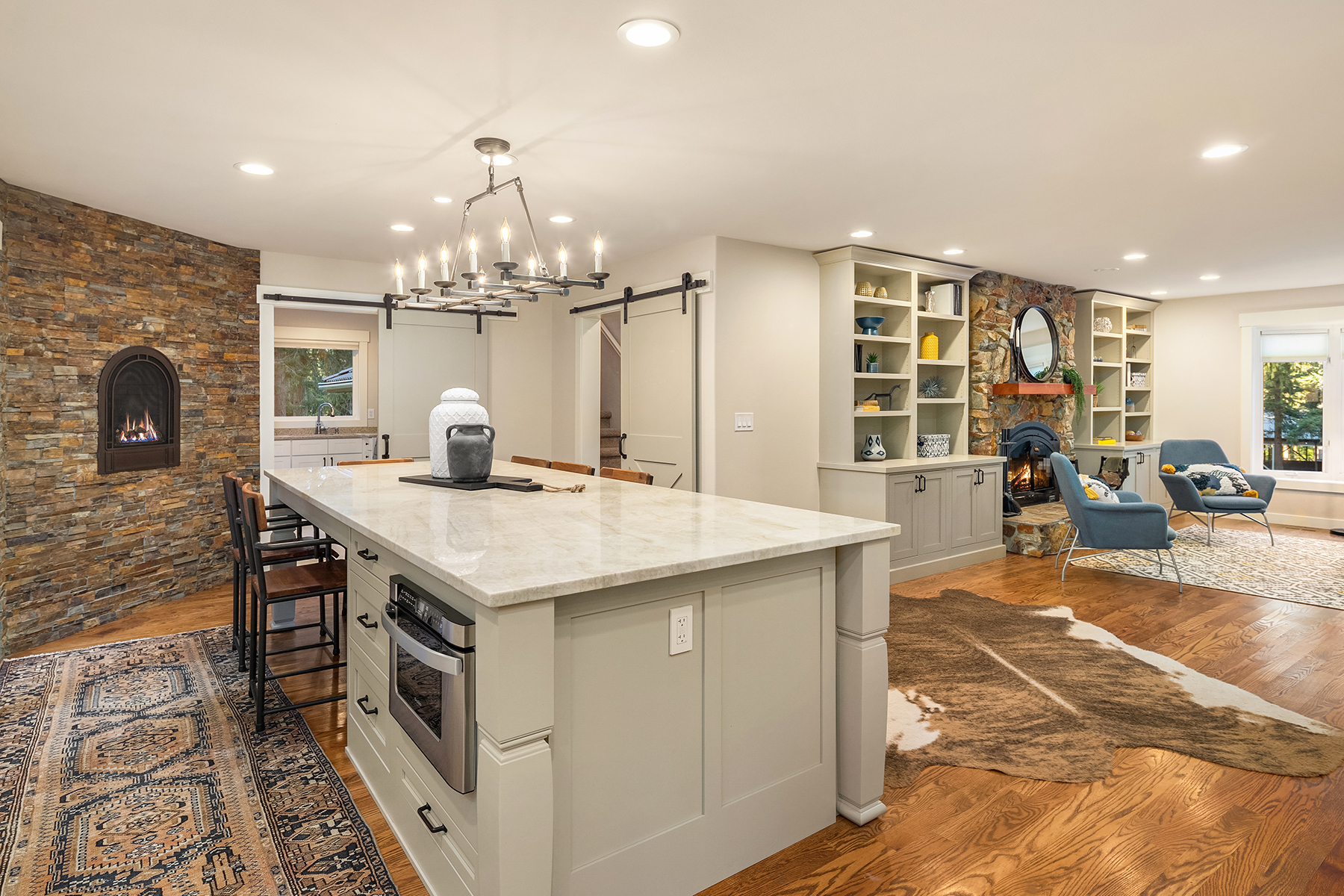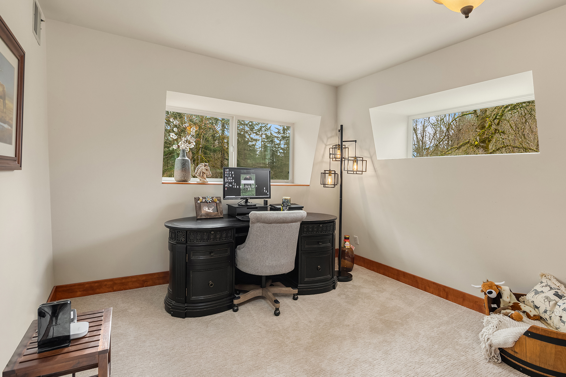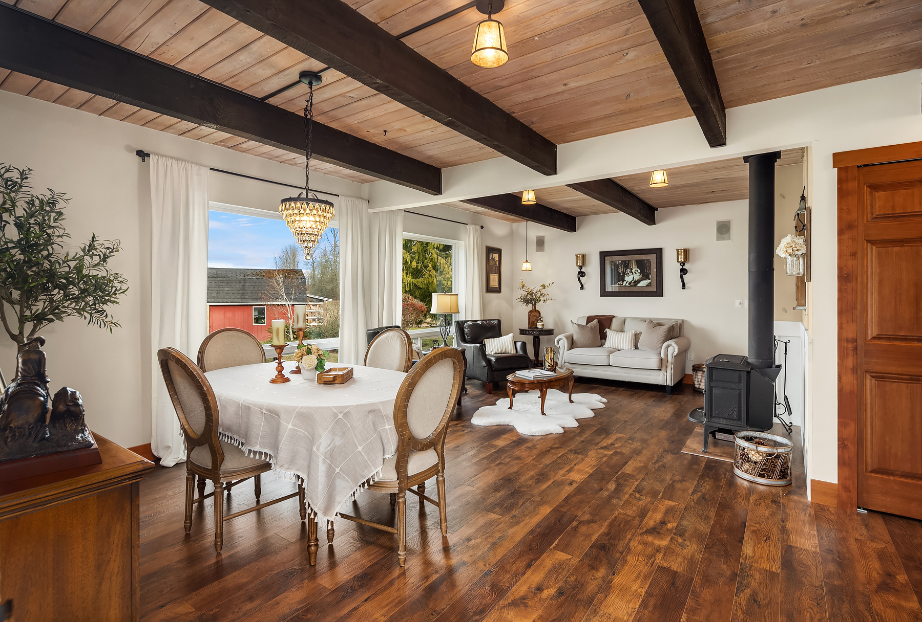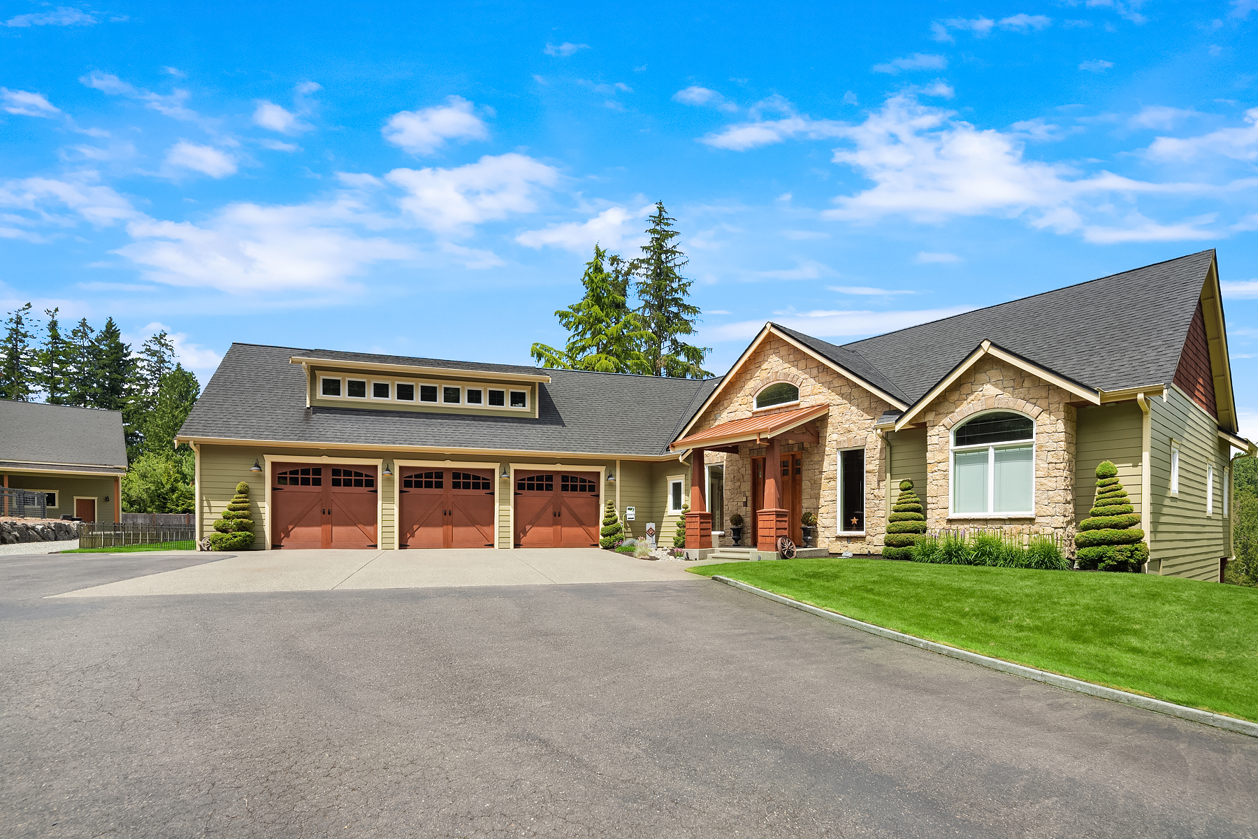 Fine Equestrian living located in idyllic Redmond location adjoining Soaring Eagle Park. Updated custom home with main floor primary suite, 5 piece spa stone bath & Chefs slab kitchen. Great Room design with fireplace, multiple French doors to deck with formal dining & living rooms. Dual staircase, Hardwoods throughout main level, bonus room up & pastoral views from most rooms. Matching 5 stall barn with paddocks, heated tack room, wash rack, hay loft with 1/2 bath & finished studio, additional en-suite guest quarters with 3/4 bathroom. Sought after direct trail access to 600 acre Soaring Eagle Park, 80×120 Covered arena with quality no water footing, fenced and cross fenced pastures, loafing sheds and a superb location down dead-end paved road offering uncompromised privacy.