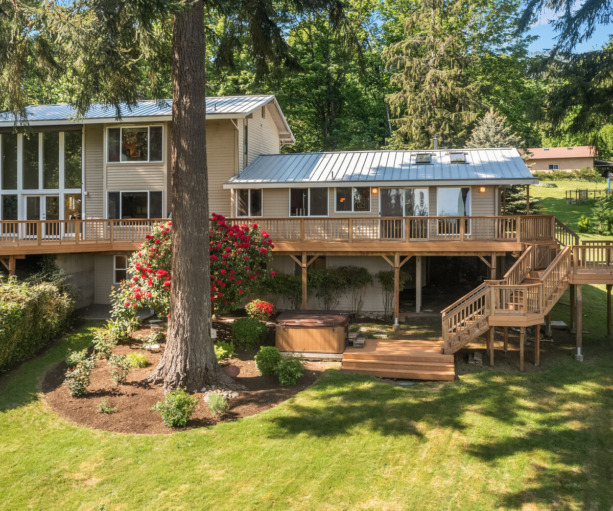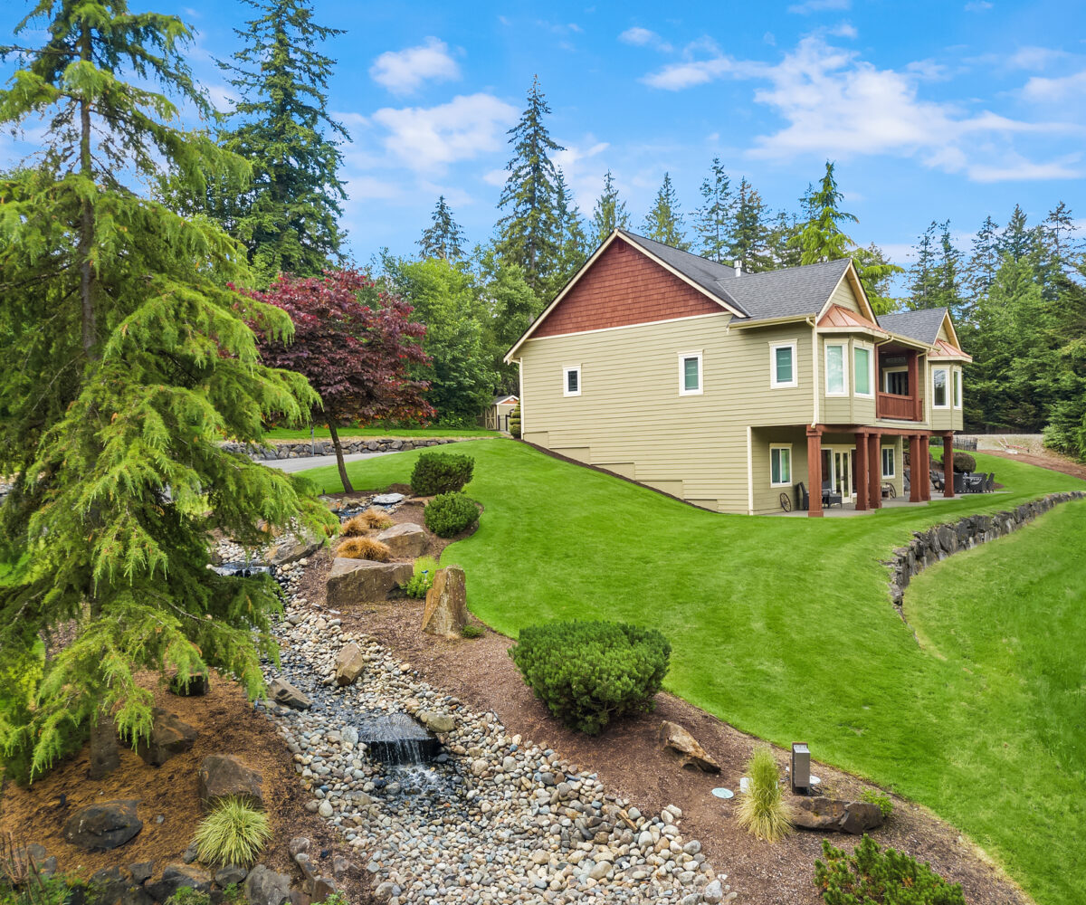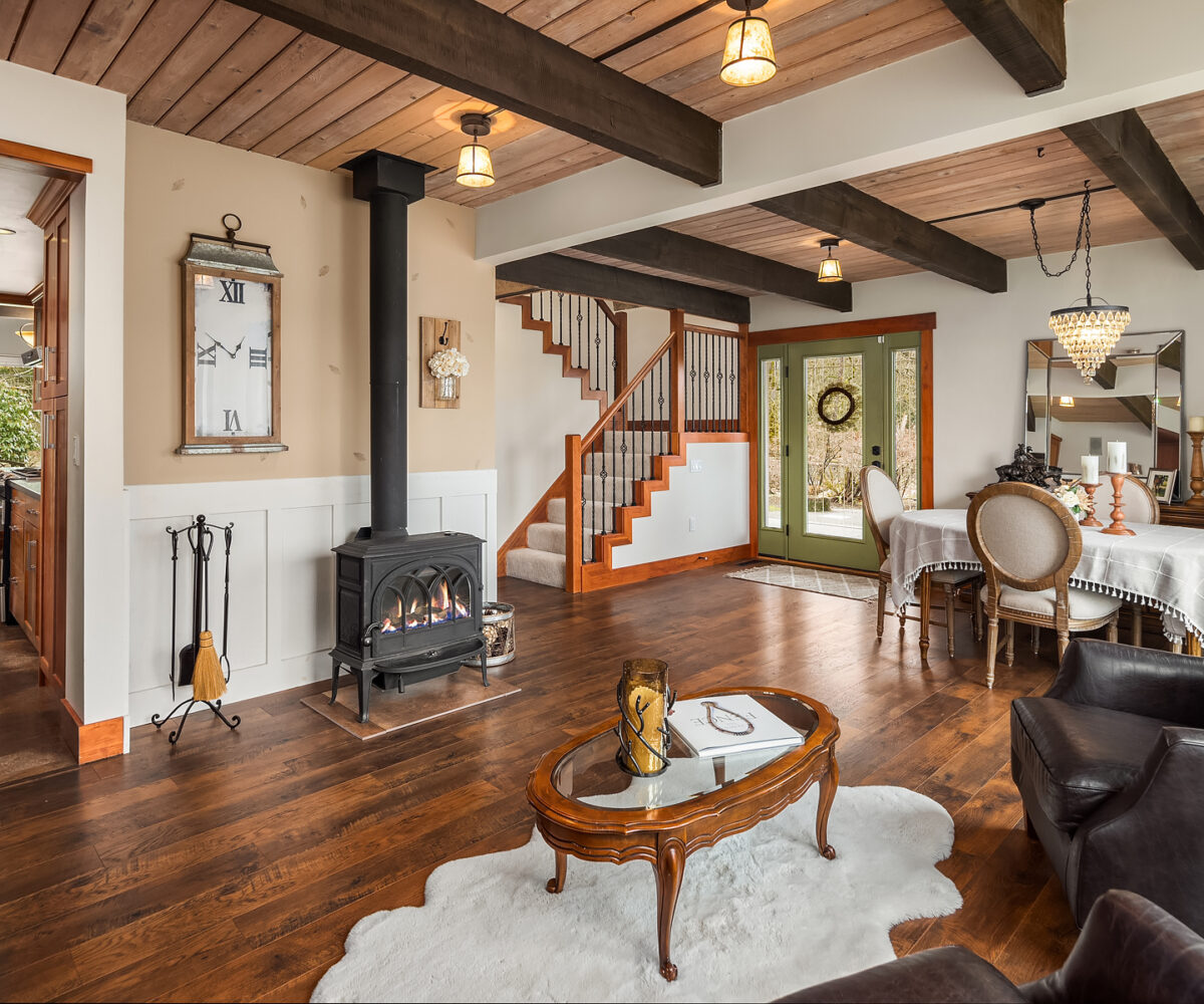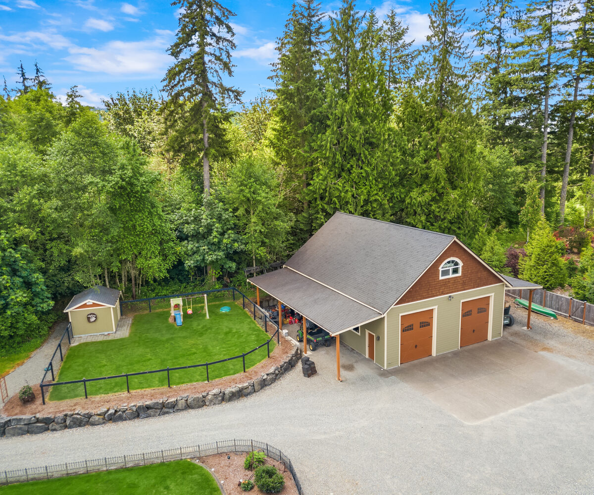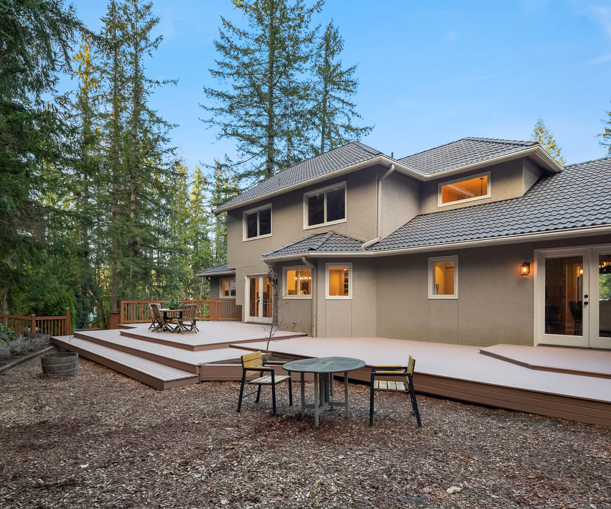 Tiger Mountain living with Mountain Views sited on over 2+ acres of sprawling lawns and gardens. Tranquil setting with room to roam. This custom home offers a massive wrap around deck ideal for entertaining, spacious Great Room Kitchen with Fireplace/Woodstove, Slate flooring, butlers kitchen area and lots of storage. Formal dining room, dramatic clerestory living room with fireplace and floor to ceiling window wall for maximum light and view. Upper-level primary suite with attached office and additional fireplace. Three Lower-level bedrooms and rec room with walk-out basement. Shop/ Barn with full length loft, covered storage/ parking. Fully fenced rear yard and partially fenced pasture area. Great location, minutes to Issaquah, hiking and trails.