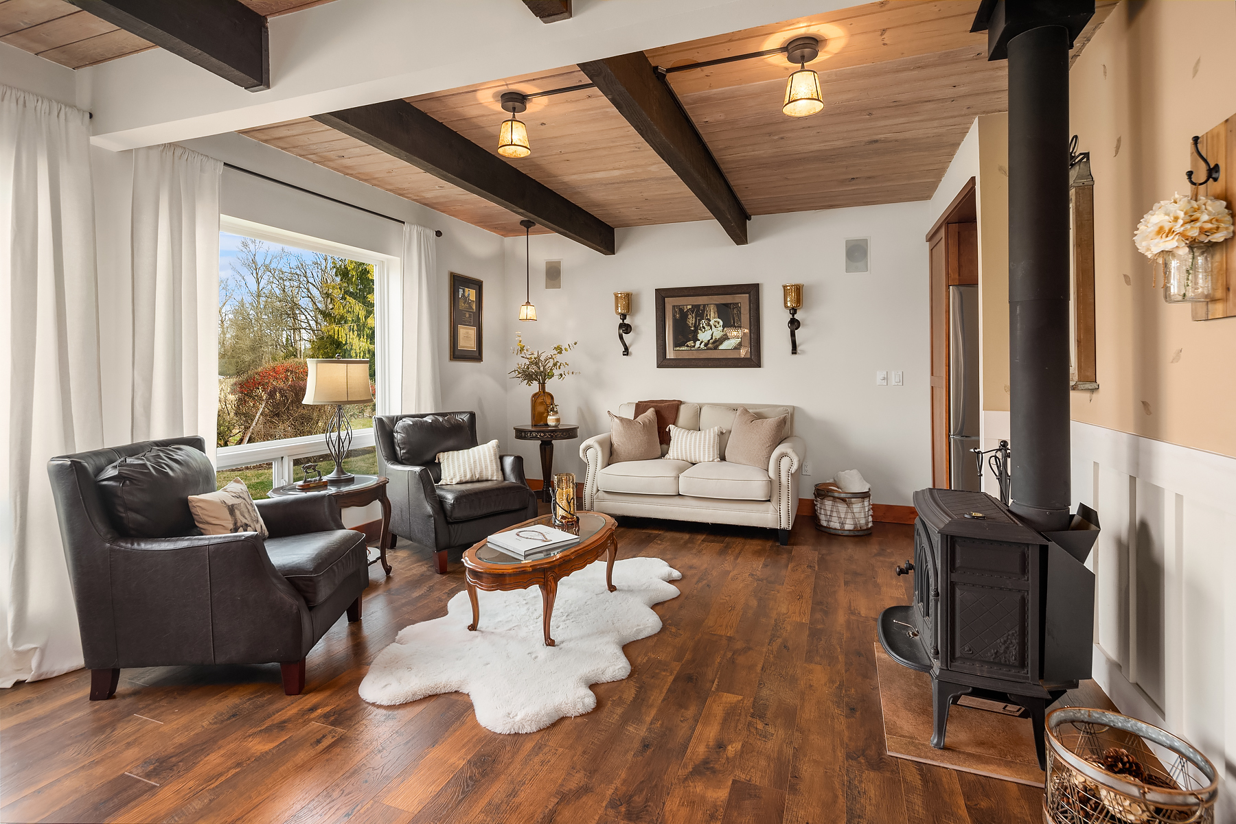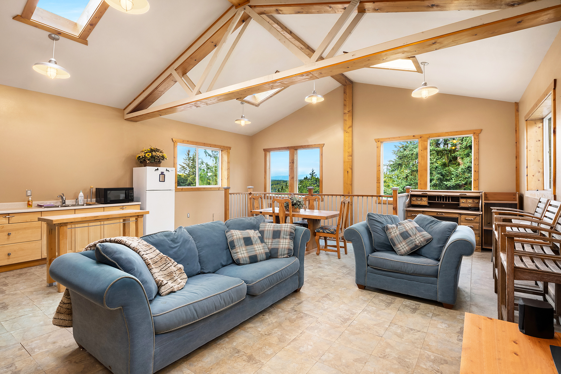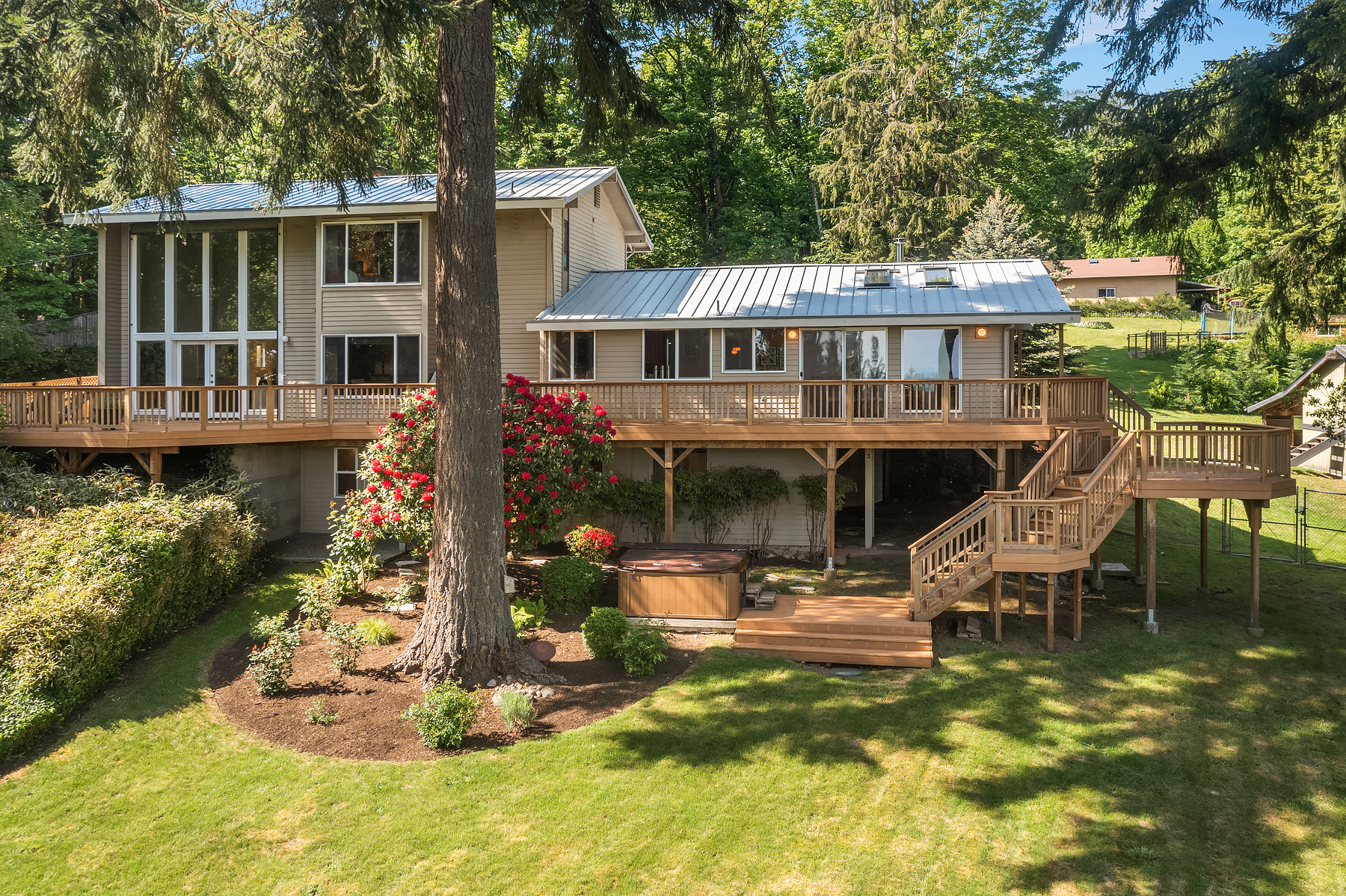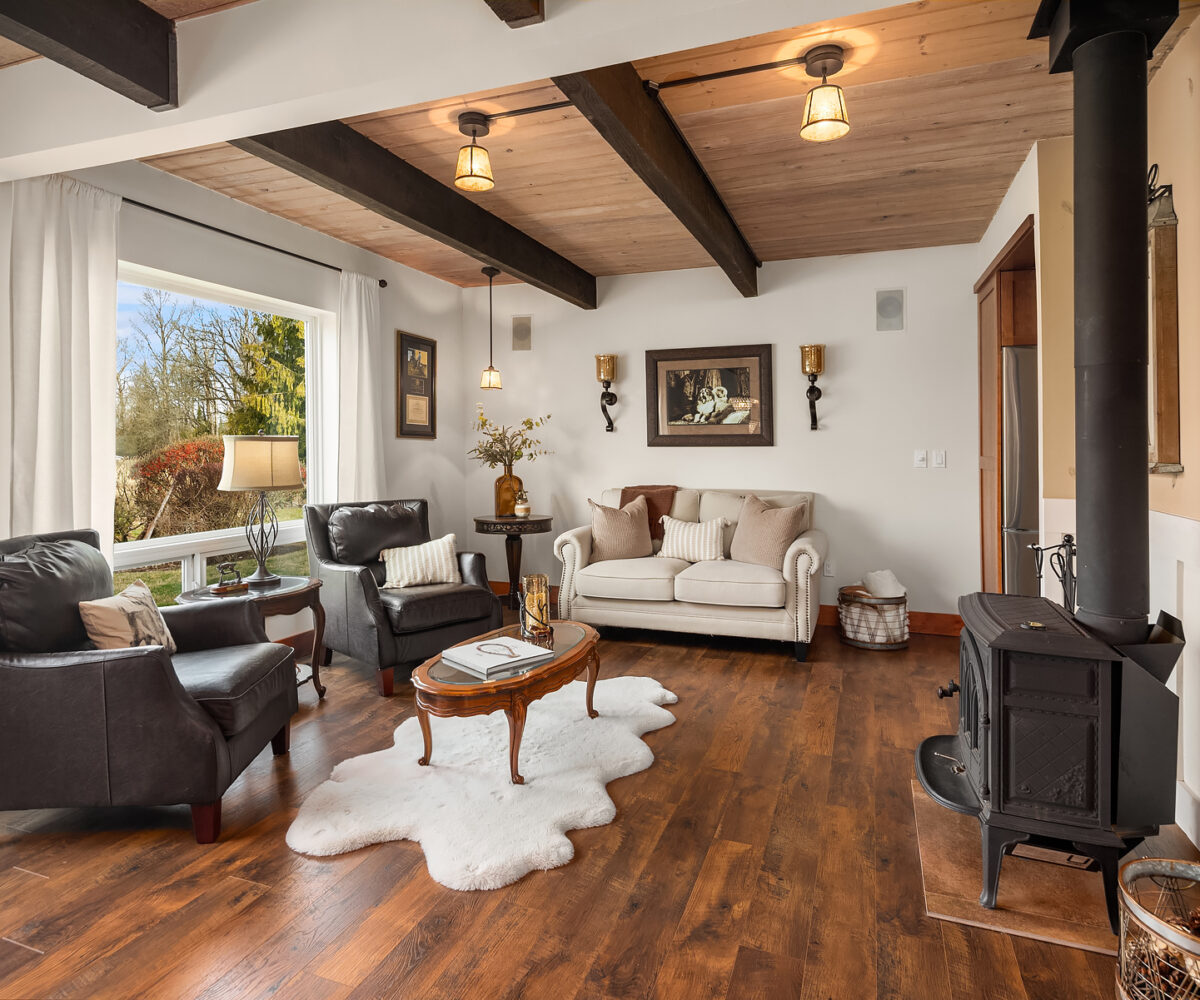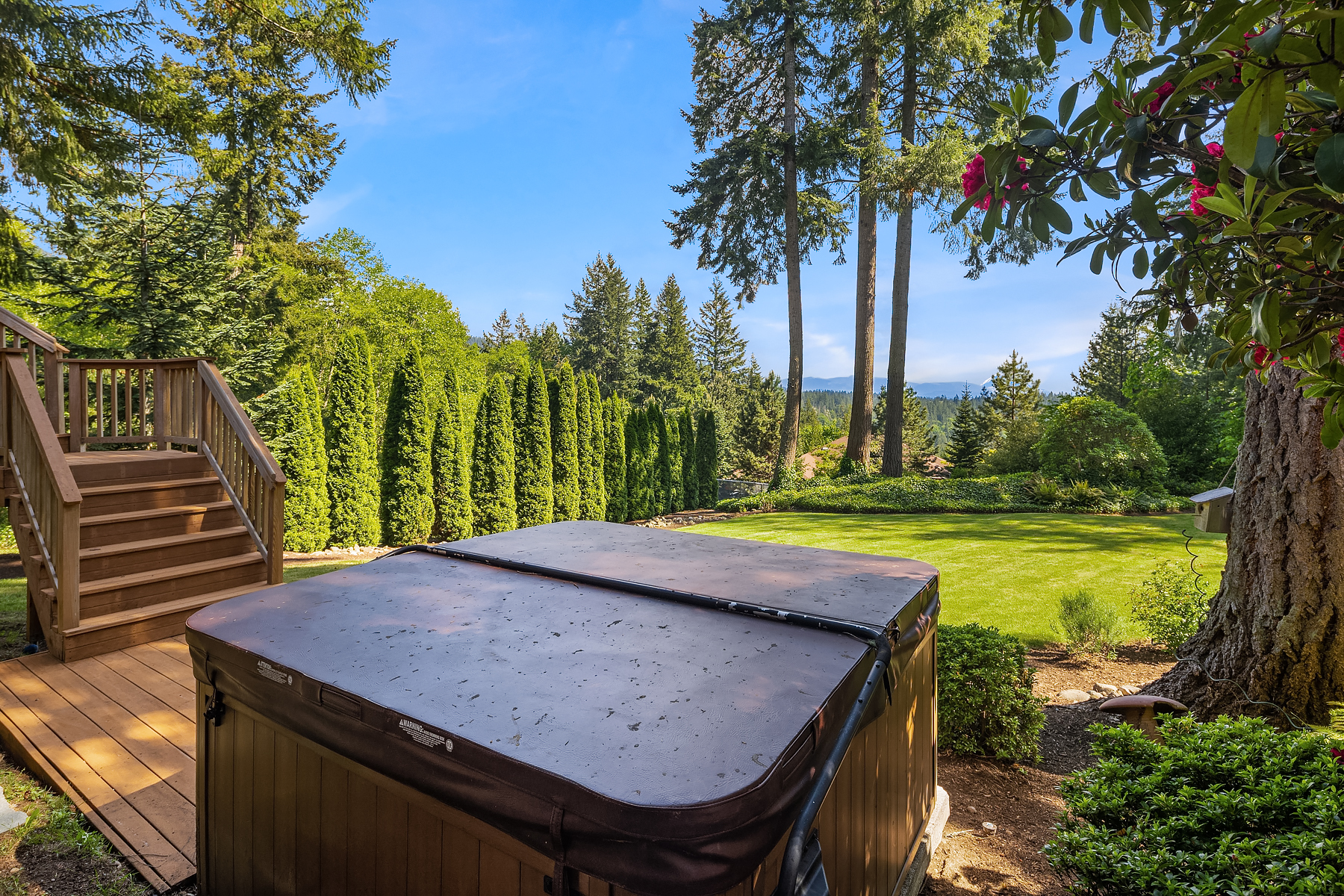 Tiger Mountain living with Mountain Views sited on over 2+ acres of sprawling lawns and gardens. Tranquil setting with room to roam. This custom home offers a massive wrap around deck ideal for entertaining, spacious Great Room Kitchen with Fireplace/Woodstove, Slate flooring, butlers kitchen area and lots of storage. Formal dining room, dramatic clerestory living room with fireplace and floor to ceiling window wall for maximum light and view. Upper-level primary suite with attached office and additional fireplace. Three Lower-level bedrooms and rec room with walk-out basement. Shop/ Barn with full length loft, covered storage/ parking. Fully fenced rear yard and partially fenced pasture area. Great location, minutes to Issaquah, hiking and trails.