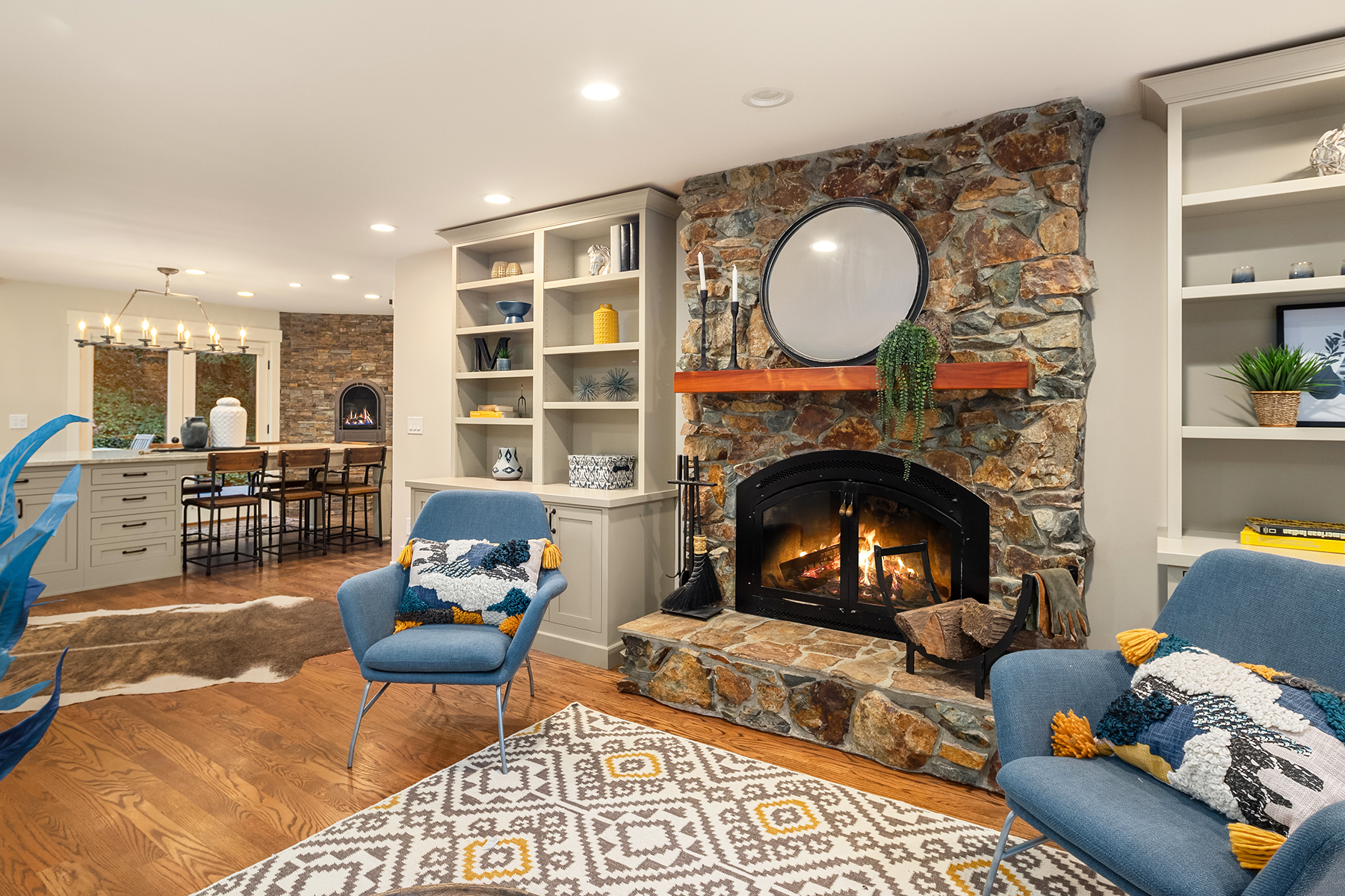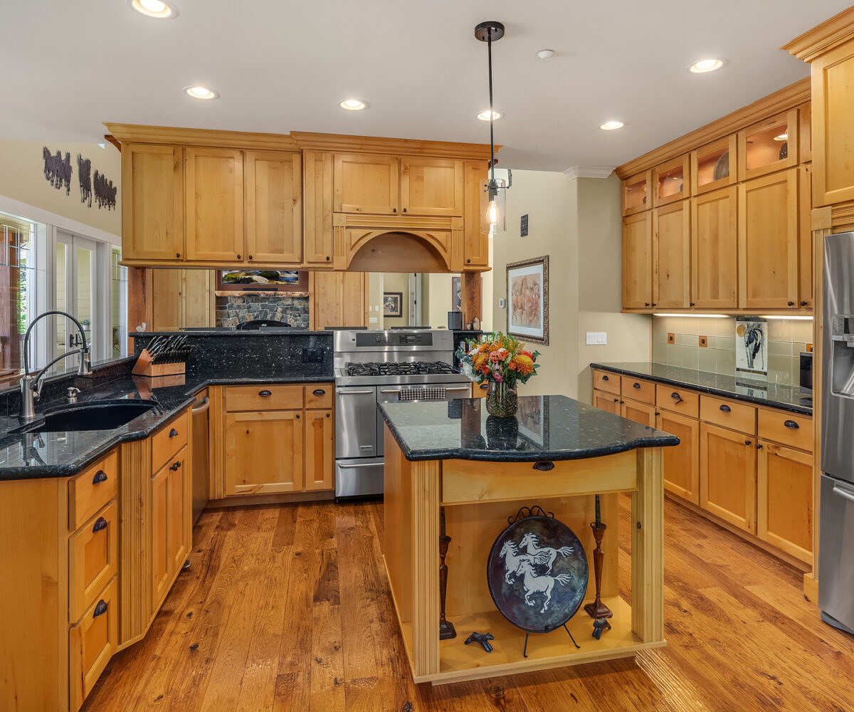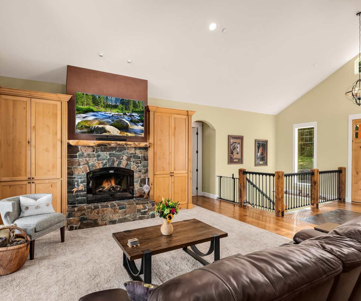24/7 Ranch. Custom equestrian living offering timeless style and setting. Territorial views, fenced and cross fenced pastures, loafing sheds, concrete compost bins and a matching 4 stall barn with attached 50×100 indoor arena with heated viewing area. Sited to perfection with walls of windows and French doors to decking. Great room kitchen, loaded custom touches include Knotty Alder cabinetry and Amish hand distressed hickory floors. Main floor spa like Primary suite, lower-level rec room and additional bedrooms. Generous bonus over 3 car garage. Detached 2 bay shop with multi purpose finished space above. Additional covered parking, trailer & RV parking. Surrounded by Estate homes!