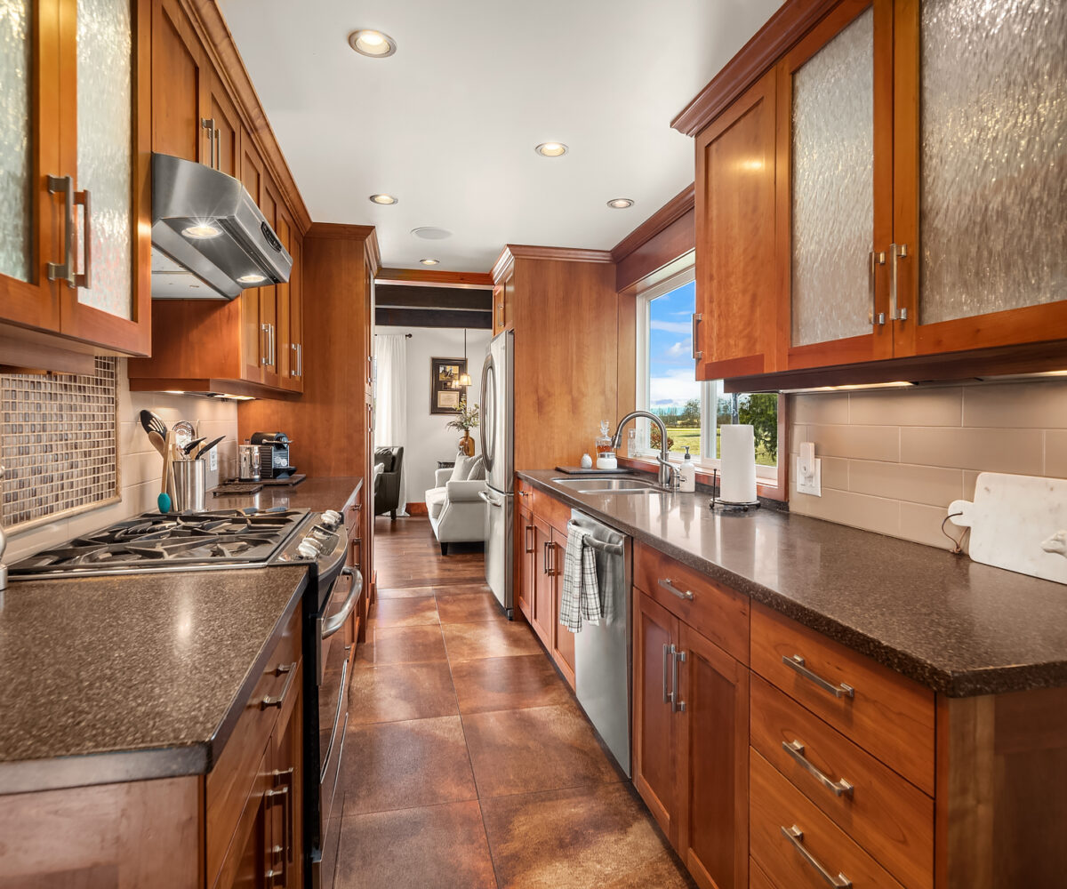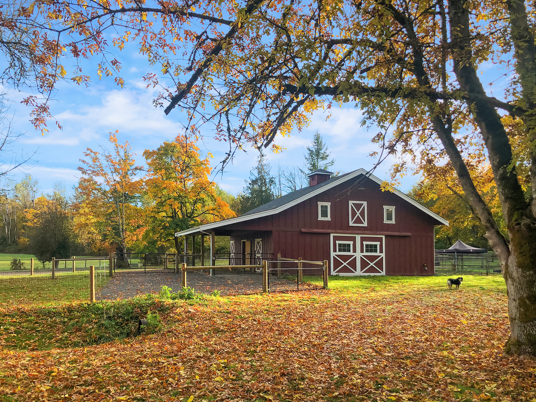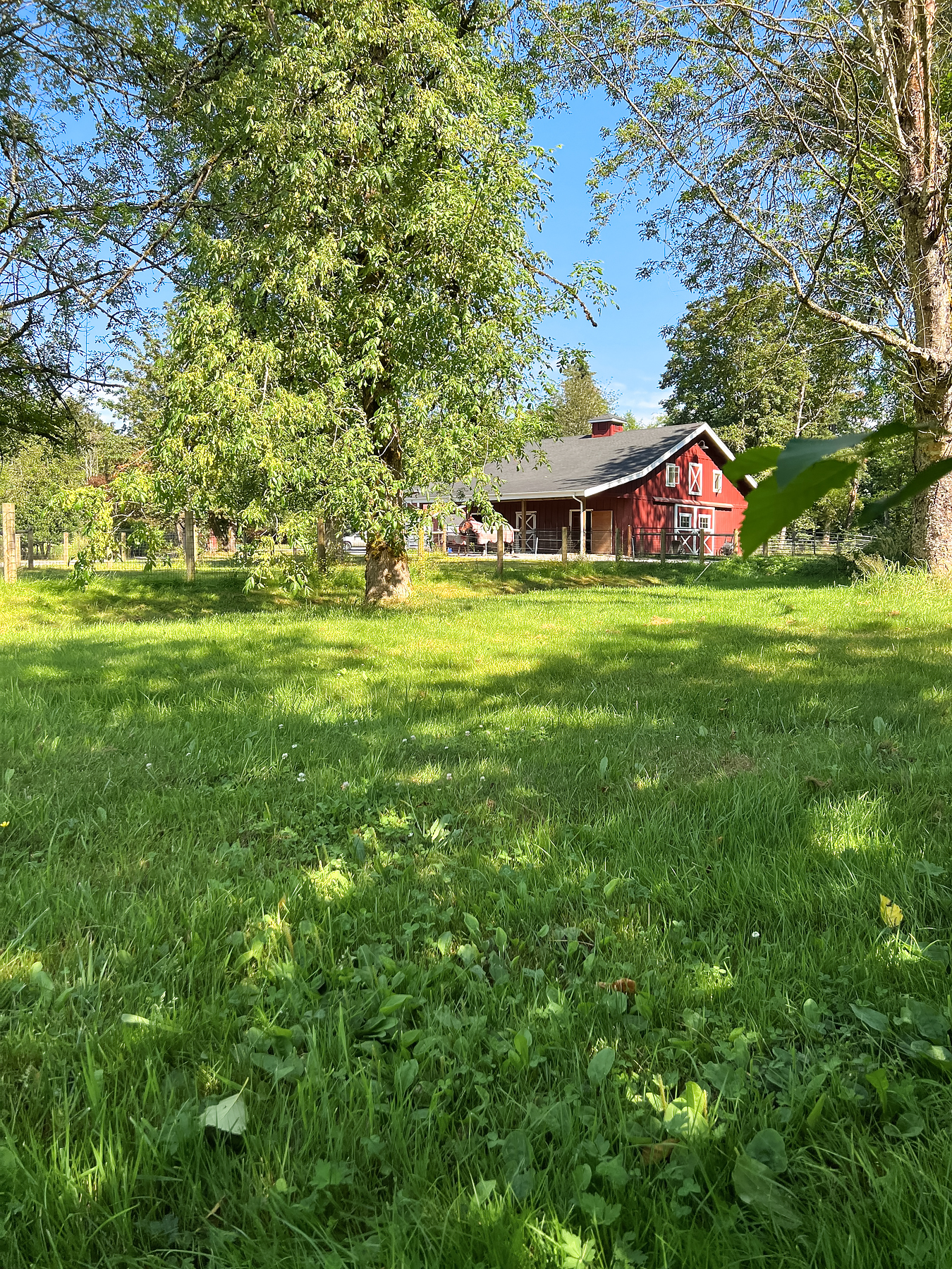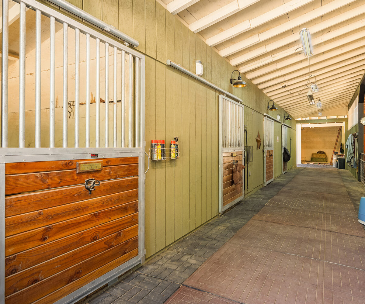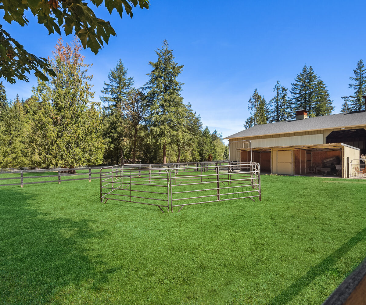 CM Trinity Farm. Location, Location! 3 Gated entrances welcome you to nearly 5 level acres, fully fenced & cross fenced with 20 stall barn. Heated tack room, hot/cold wash rack, grooming bay, laundry & 3/4 bath. 70’x140′ Covered arena, 100’x200′ outdoor sand arena with built in sprinkler system. 13 Paddock areas all with loafing sheds. 3 Bedroom + den, 2 bath main residence with recent updates. Great room kitchen, open living/dining with wall of windows and walk out to entertainment sized deck, large fenced yard and pathway to barn. Attached 2 car garage. Detached 3 car garage, and 2 bay equipment shed with carport awning. Garage and covered parking for up to 8. 2 Bedroom, 1 bath caretaker or trainer residence with separate gated entrance.