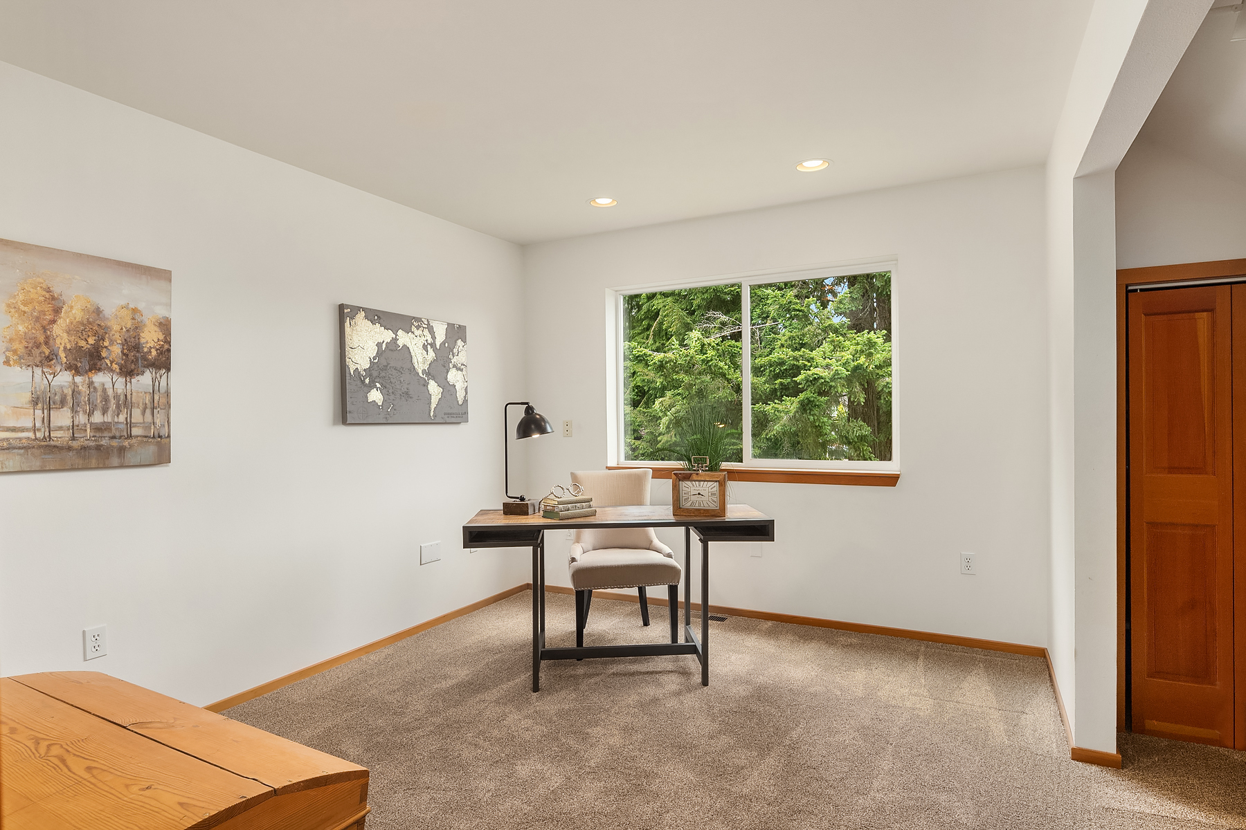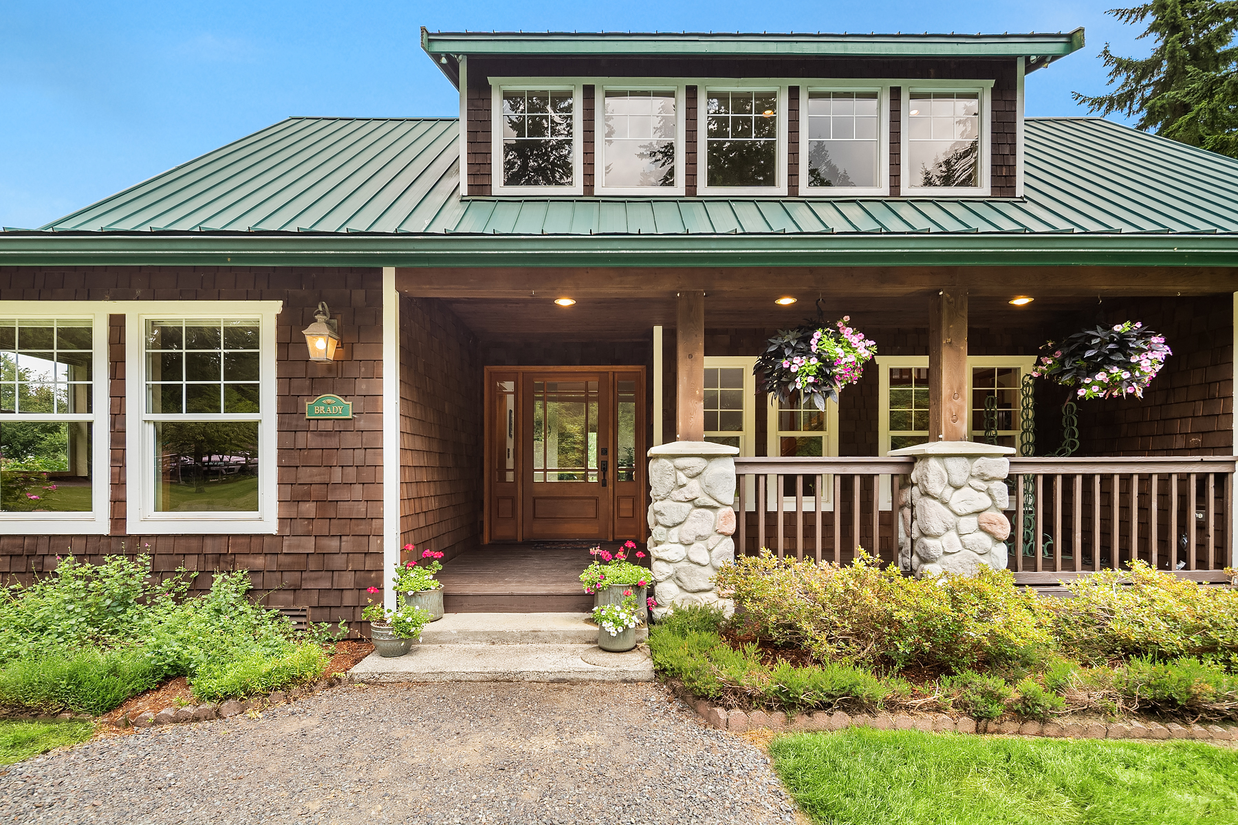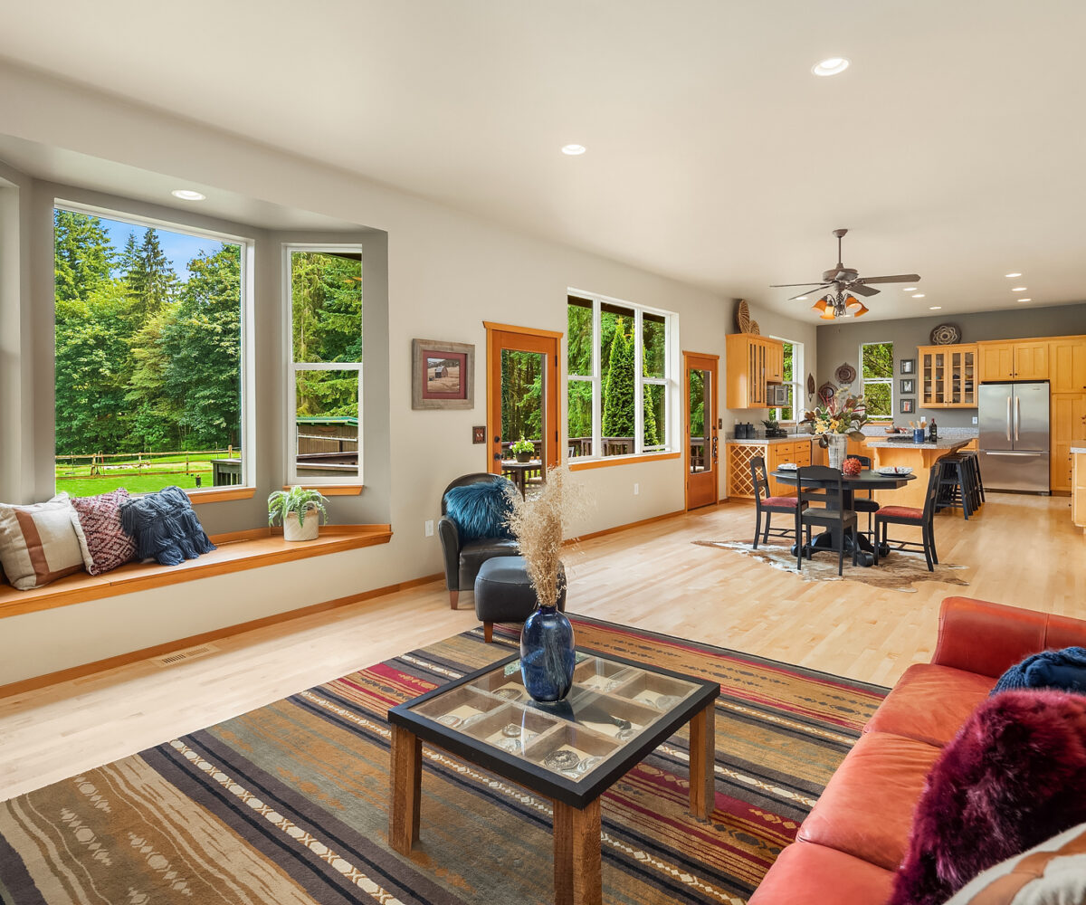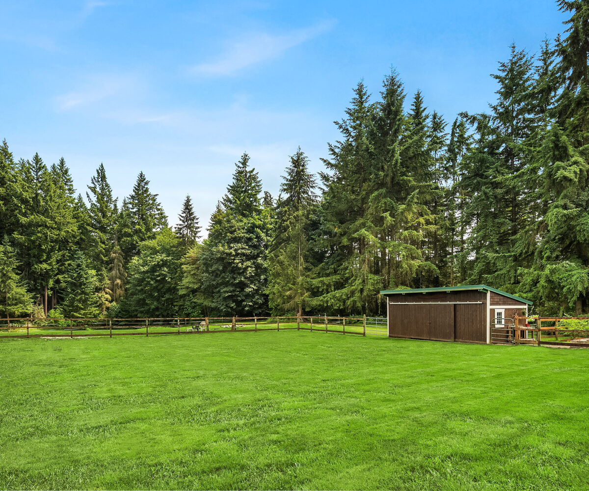 On the Park at Pikes Peak, Bridle Trails. A timeless Northwest design blends harmoniously on this 1 acre setting. Floor to ceiling window walls allow the outside in with a forested backdrop and uncompromised privacy. Sensational style with rich finishes, wood beamed ceilings and unique spaces throughout the home making this property one of a kind. Sprawling lawns, parked out grounds and 3 stall barn with tack room and fenced paddock. Idyllic location down a quiet dead end street and direct trail access from your property. Enjoy a tour of the home: https://my.matterport.com/show/?m=MkucD8LBhqq