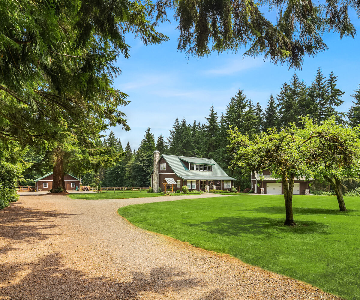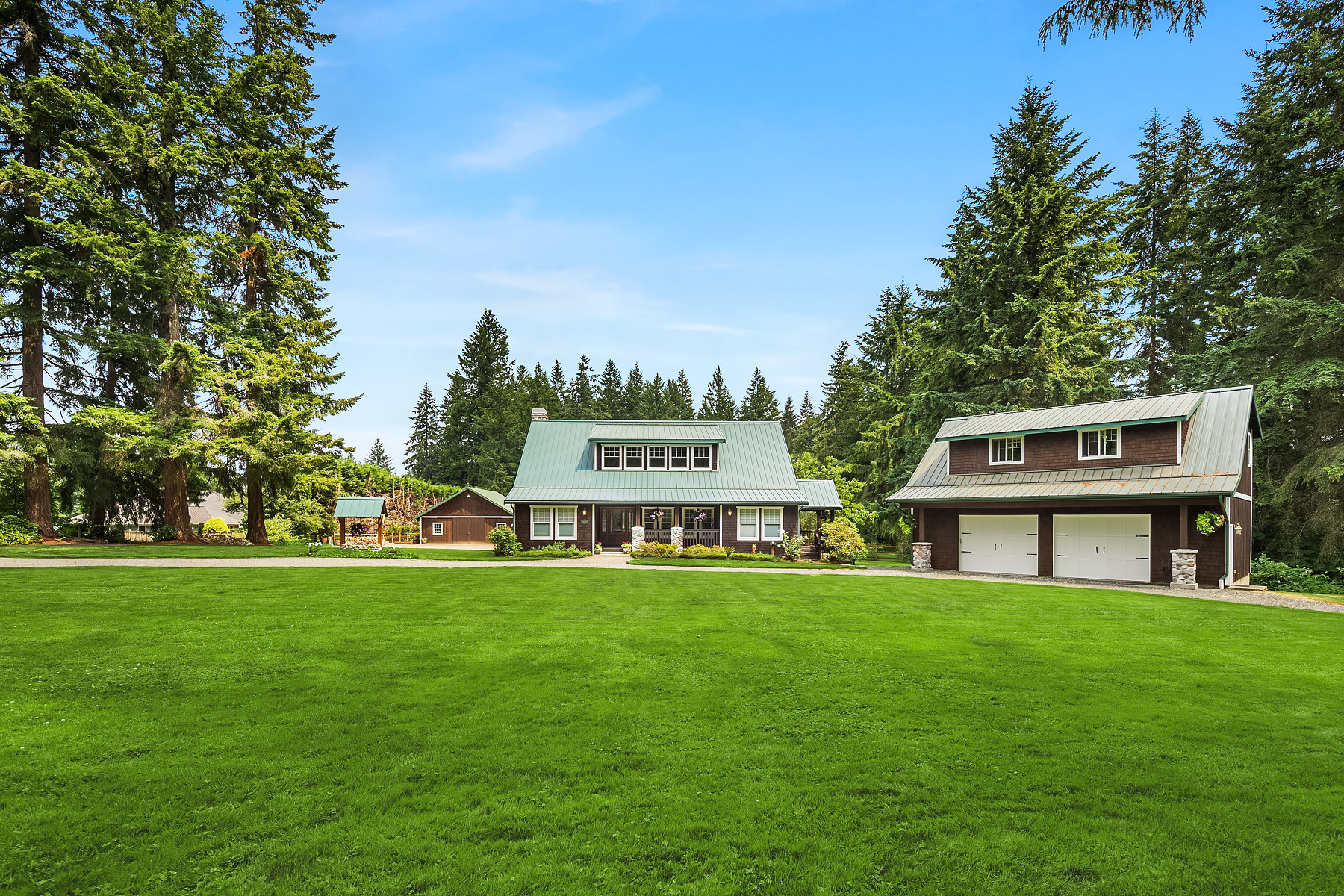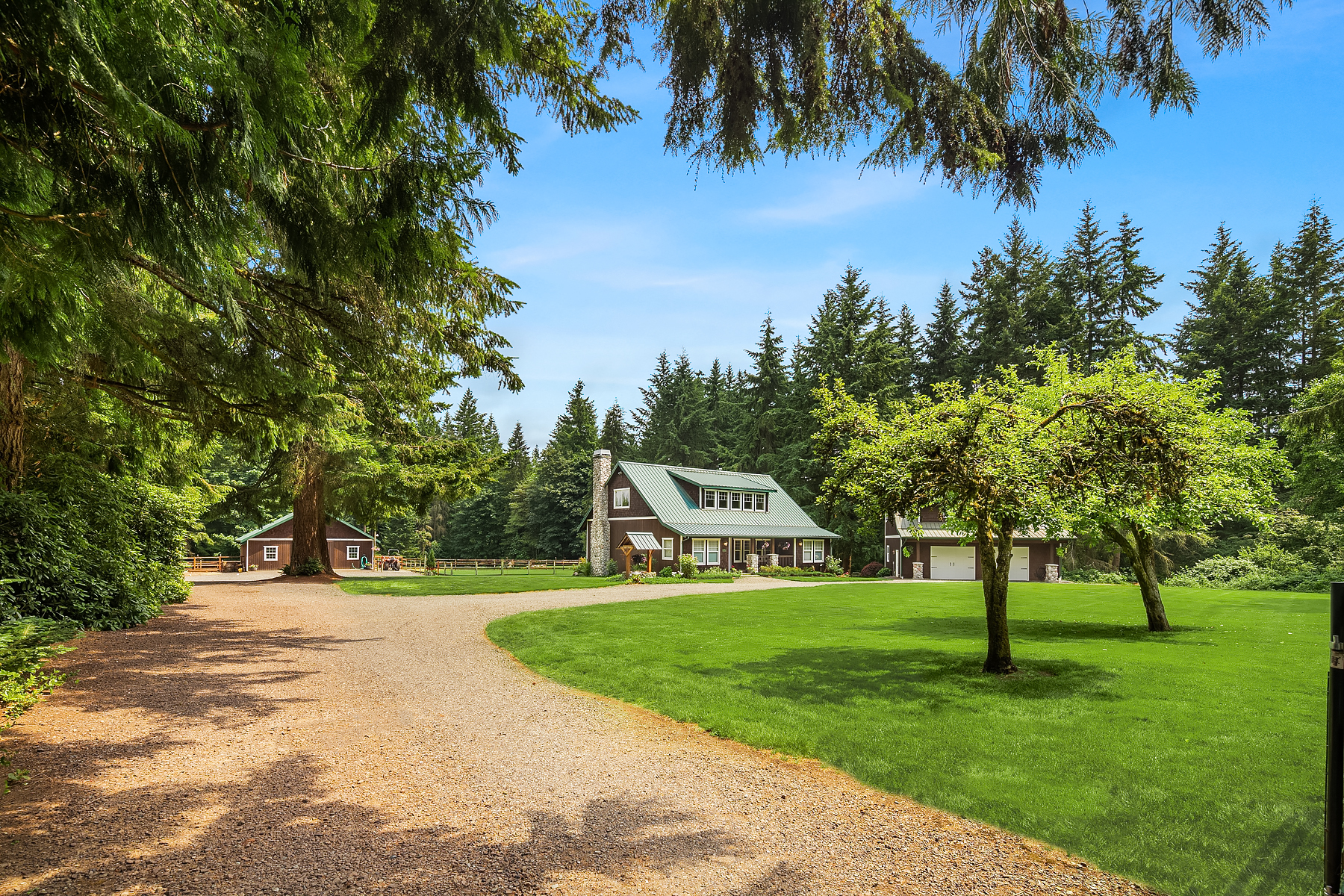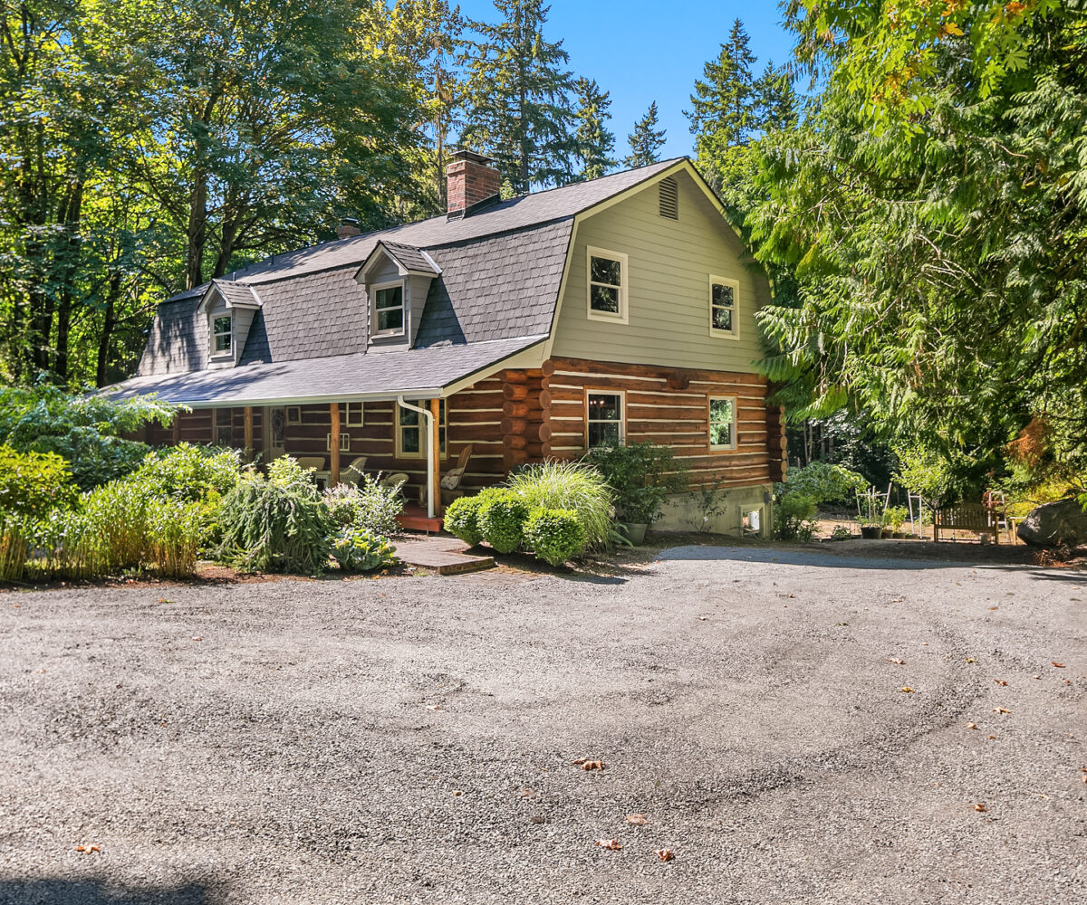 Story book setting with treasured log home nestled at the south end of the sought after neighborhood of Westchester on Novelty Hill. Unique in every way and perfectly sited on over 7 pristine acres. Parked out grounds, walking trails, fruit trees, sport court and total privacy with winding private entry driveway. Great room living, dining area and family room with fireplace. Beautifully updated quartz and stainless kitchen, walk in pantry, main floor powder room, mud room and office space. Home is loaded with character, newer Anderson double hung windows, bedrooms on upper and lower levels, 2 rec rooms, over 4,000 sf. Firepit, stone pathways, mature landscaped grounds, walking trails on property. A magical setting in an unbeatable location.