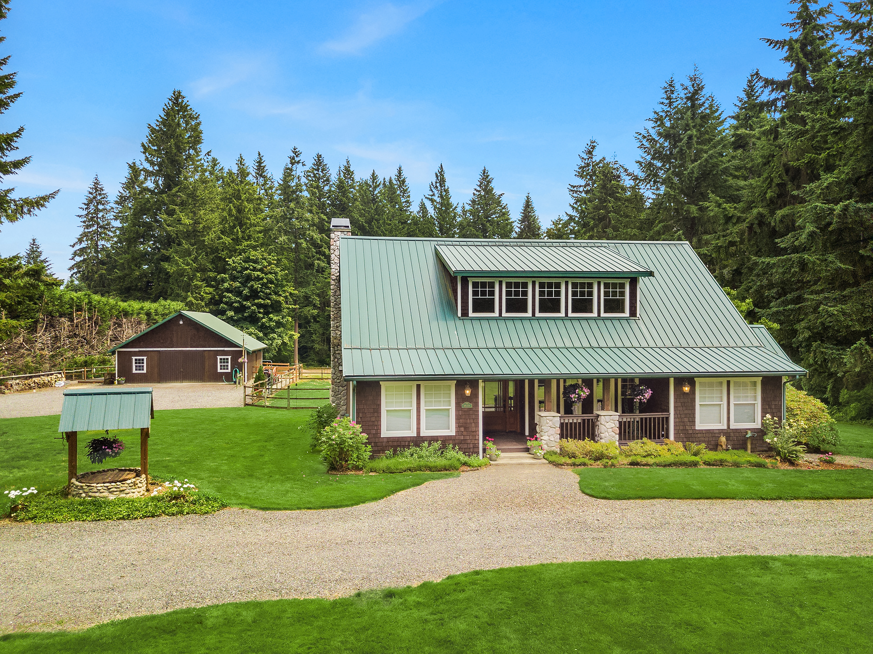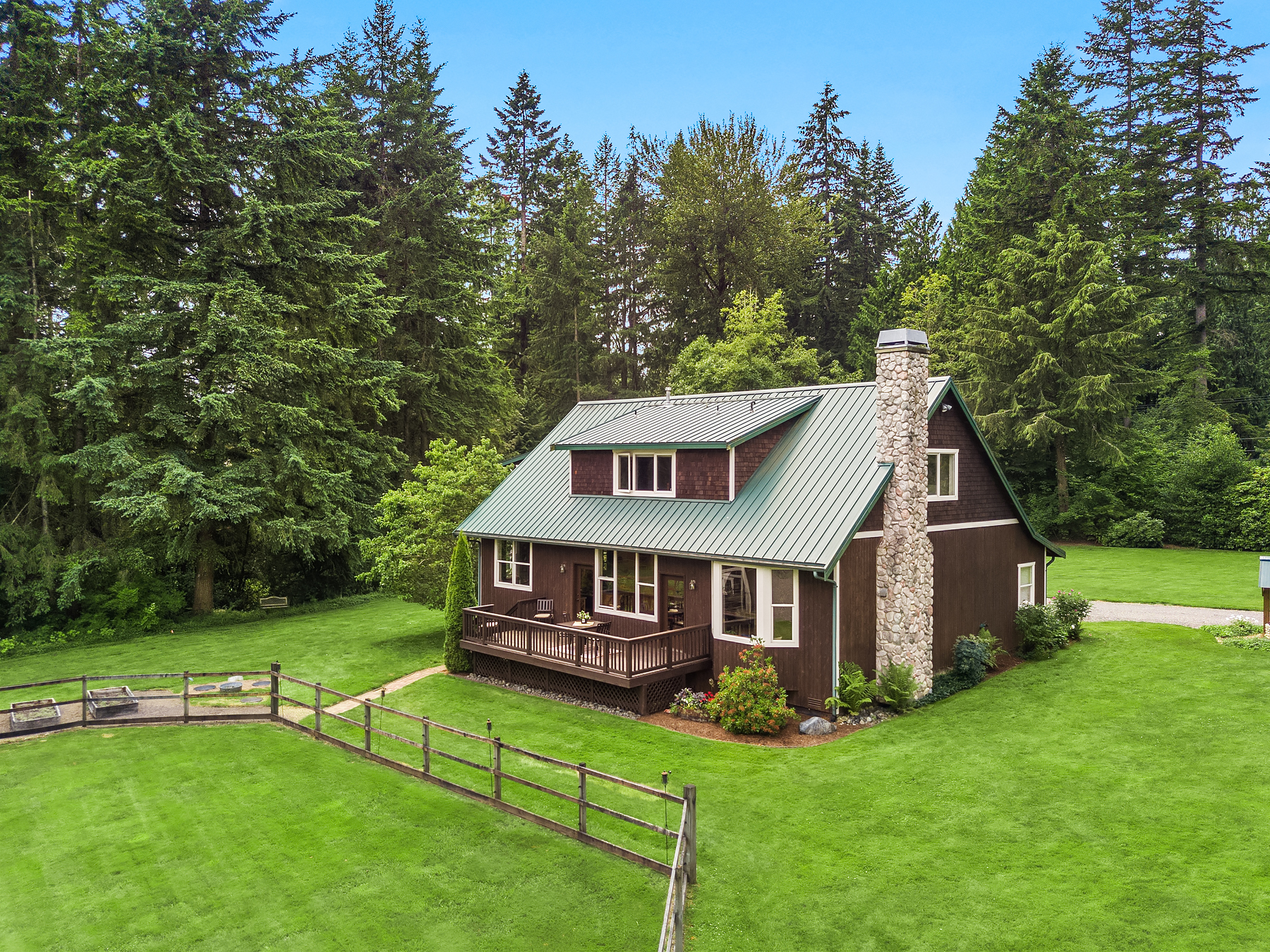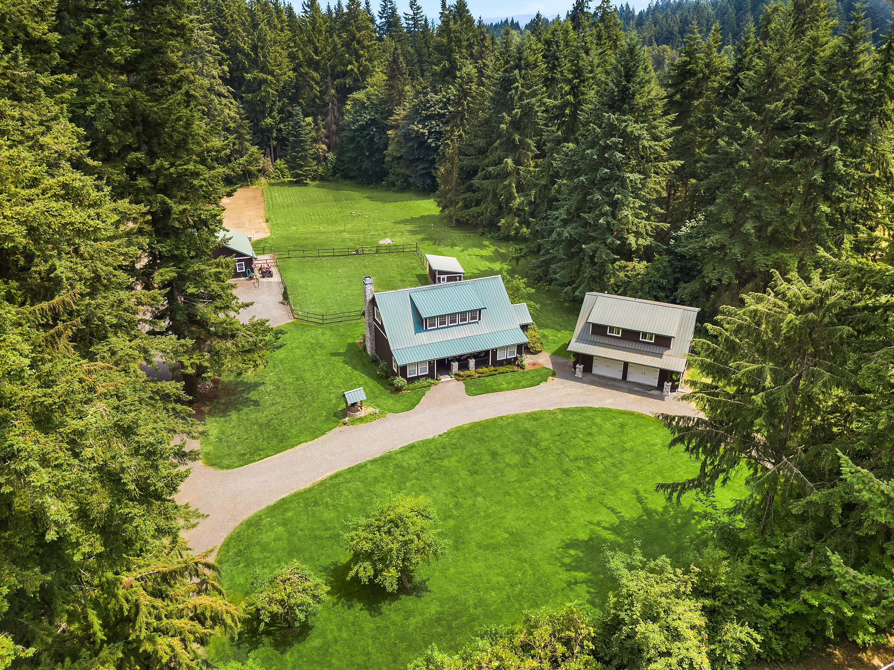 Story book setting with treasured log home nestled at the south end of the sought after neighborhood of Westchester on Novelty Hill. Unique in every way and perfectly sited on over 7 pristine acres. Parked out grounds, walking trails, fruit trees, sport court and total privacy with winding private entry driveway. Great room living, dining area and family room with fireplace. Beautifully updated quartz and stainless kitchen, walk in pantry, main floor powder room, mud room and office space. Home is loaded with character, newer Anderson double hung windows, bedrooms on upper and lower levels, 2 rec rooms, over 4,000 sf. Firepit, stone pathways, mature landscaped grounds, walking trails on property. A magical setting in an unbeatable location.