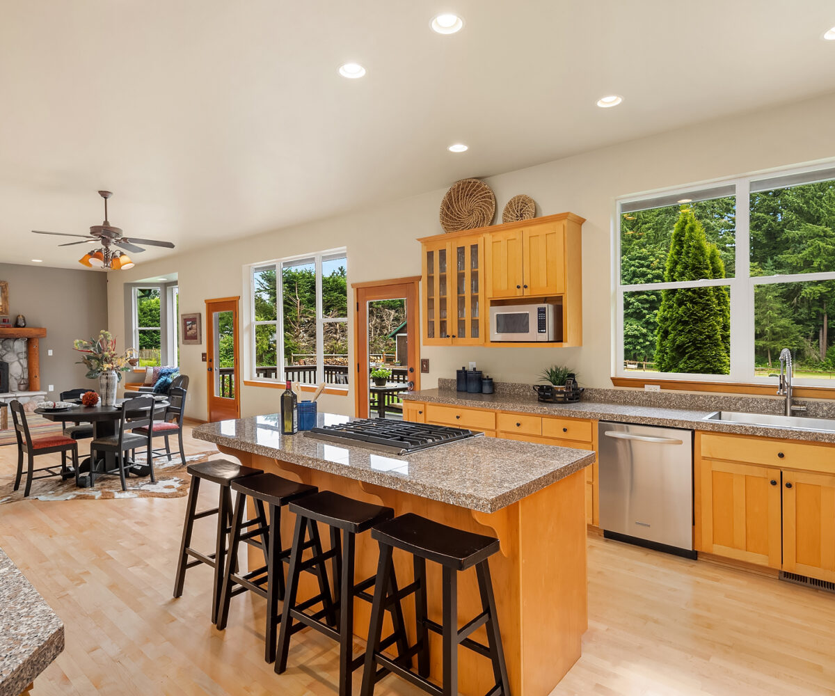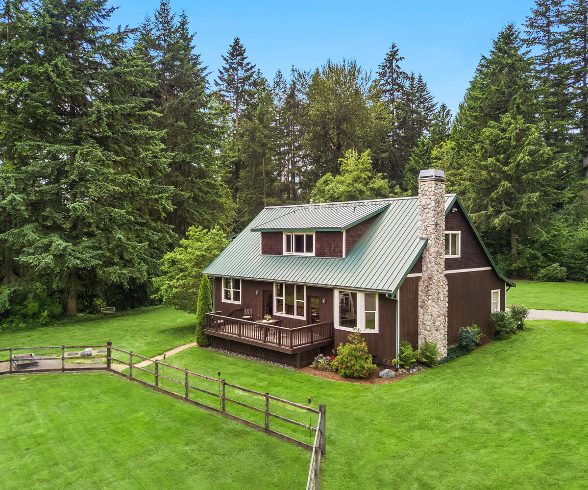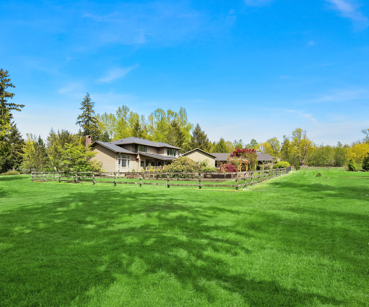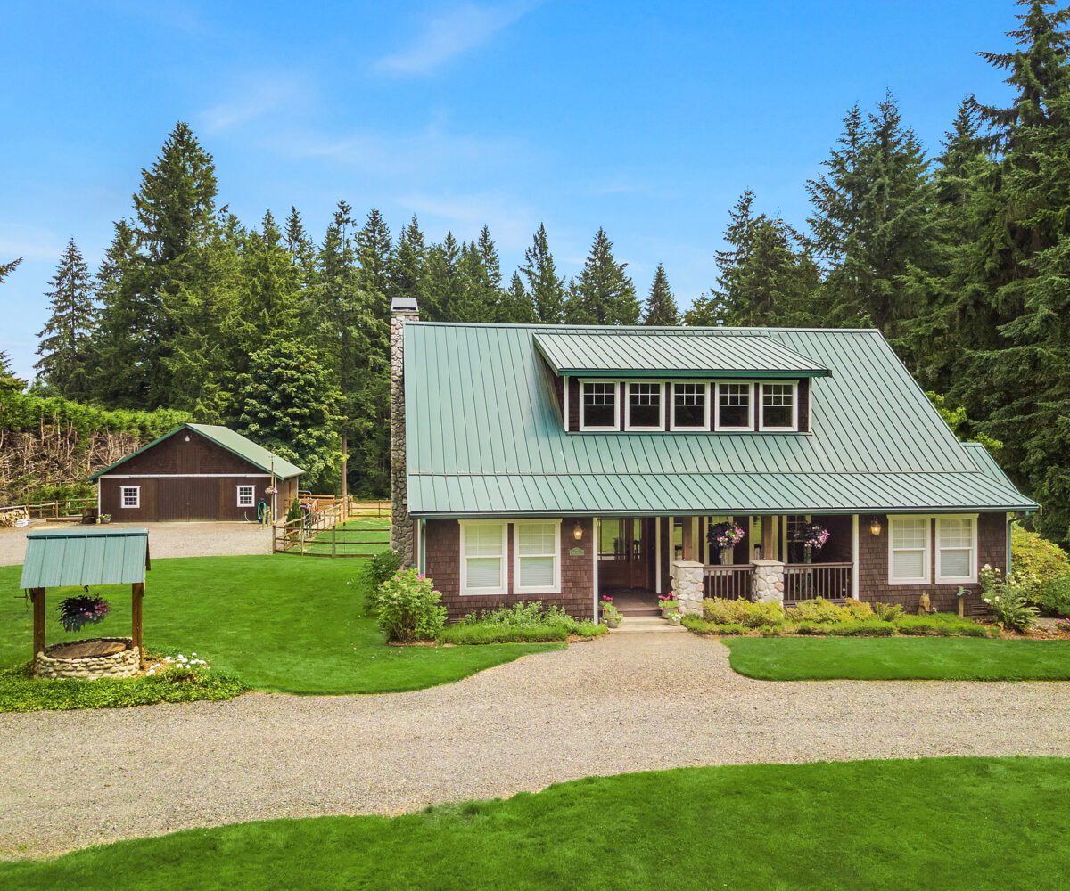 Story book setting with treasured log home nestled at the south end of the sought after neighborhood of Westchester on Novelty Hill. Unique in every way and perfectly sited on over 7 pristine acres. Parked out grounds, walking trails, fruit trees, sport court and total privacy with winding private entry driveway. Great room living, dining area and family room with fireplace. Beautifully updated quartz and stainless kitchen, walk in pantry, main floor powder room, mud room and office space. Home is loaded with character, newer Anderson double hung windows, bedrooms on upper and lower levels, 2 rec rooms, over 4,000 sf. Firepit, stone pathways, mature landscaped grounds, walking trails on property. A magical setting in an unbeatable location.
