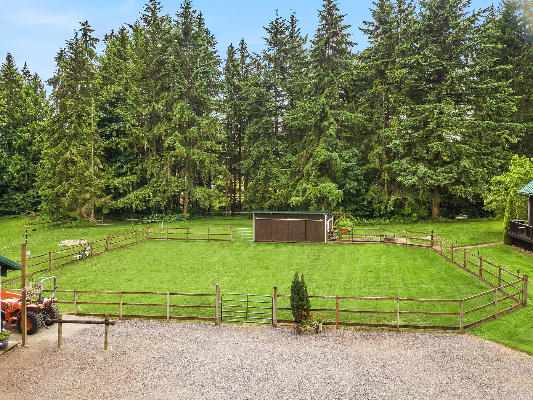 Idyllic equestrian living on 2+ beautifully fenced and cross fenced acres. Custom home offers stone, slate and hardwoods thru-out most living spaces, new carpet in bedrooms, new paint, Great room living, formal dining, lower level Rec room, Master suite with 3/4 bath. Two fireplaces. Outdoor paver patio living with fireplace, large dog run with gravel footing, custom barn/shop with 4 stalls, paddocks, tack room and hot/cold wash rack with infra-red heater. Full length covered overhang for tractor/storage, exceptional wood shop area with loft, built-ins and dust control system. 60′ Round pen, generous parking areas all thoughtfully designed for easy horse care and maintenance. Fenced rear yard with fruit trees, quiet setting and great location.