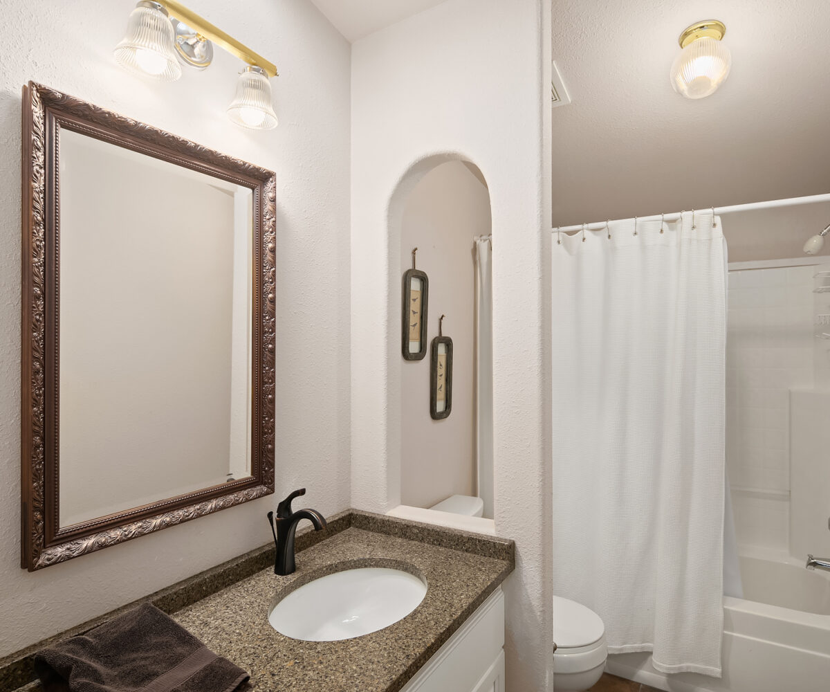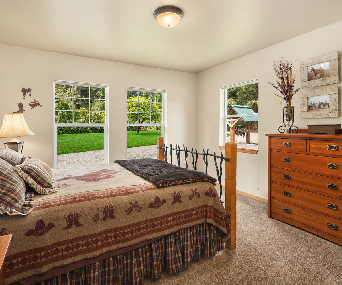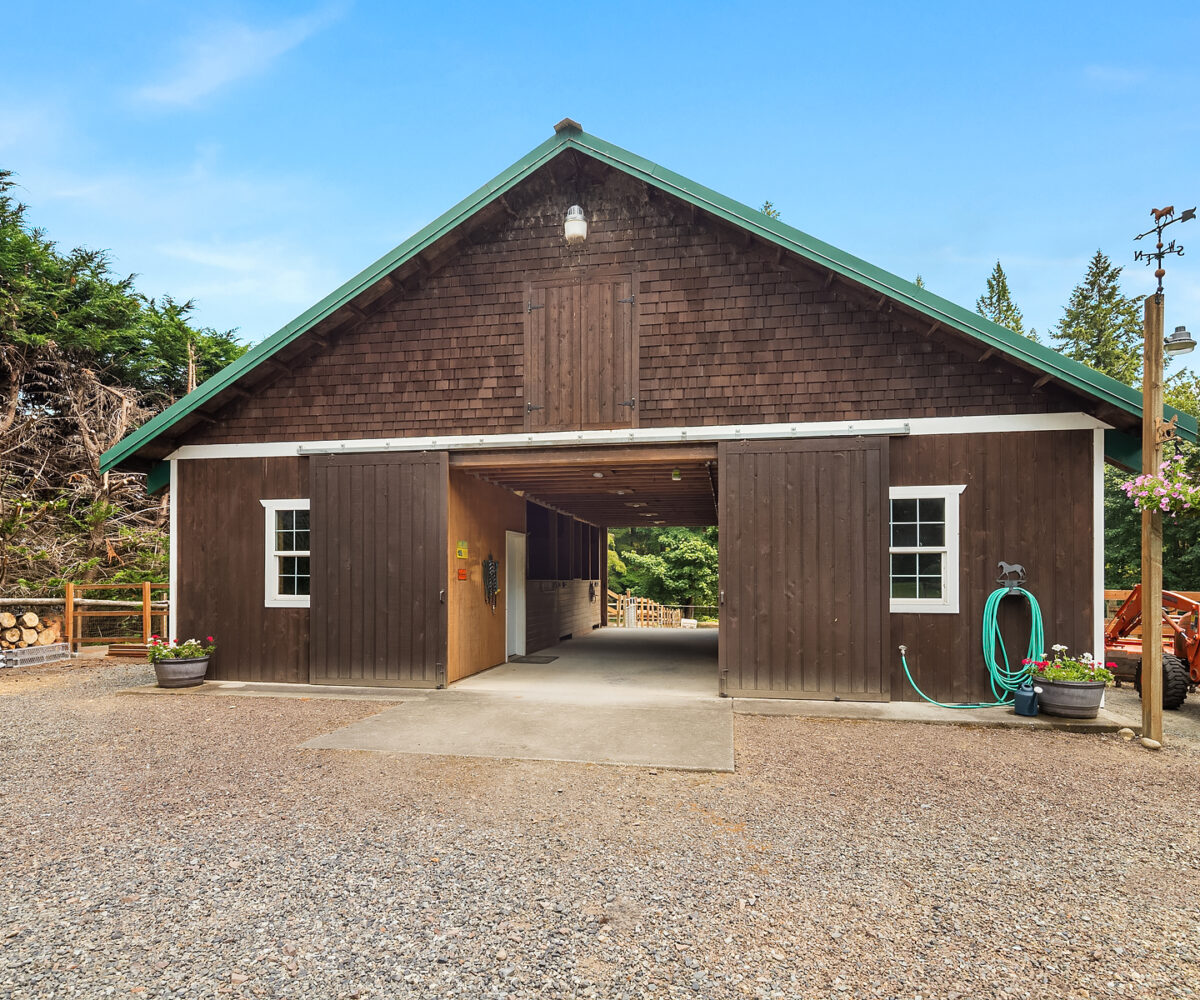 Welcome home! 3 Acre Woods Creek Equestrian property. Totally usable land, dual entrances, main house plus guest house offering a rare family compound living opportunity. 5 Stall barn with full length loft, tack room, office, round pen, terrific outdoor 150×240 sand arena with chutes. Fenced pastures and paddocks, every inch of this property is usable! Main home, 2 beds + den awaits your cosmetic updates! Galley kitchen with nook, living & family rooms, vaulted ceilings, massive wrap-around country porch with overhang. Guest house offers additional 2 beds, 1 bath, 810+ Sf, 5 bed septic per as-built serves both homes. Ample trailer parking and RV hookup, close to town and easy freeway access!